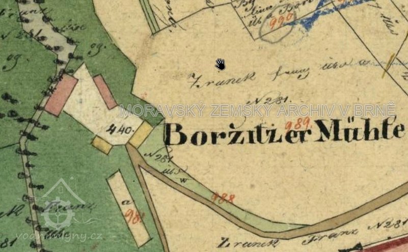 1720 - podle urbáře buchlovského panství se pod rybníkem při boršických hranicích nachází mlýn, který se jmenuje Sovín. Tento mlýn měl trojí složení, patřily k němu 2 louky. Z mlýna i z luk se platilo 70 zl. Mlynář měl povinnost mlít panské obilí, slad, kaši i kroupy. Drobné opravy prováděl na vlastní náklady, větší rekonstrukční práce měl dotovány vrchností. Na vodní kolo měl příspěvek 1 zl. 10 kr., na spodní kámen 45 kr., na palečné kolo 1 zl. 10 kr., na hříblo 1 zl., na kroucení běhounu 1 zl. a na mlýnskou truhlu 1 zl.