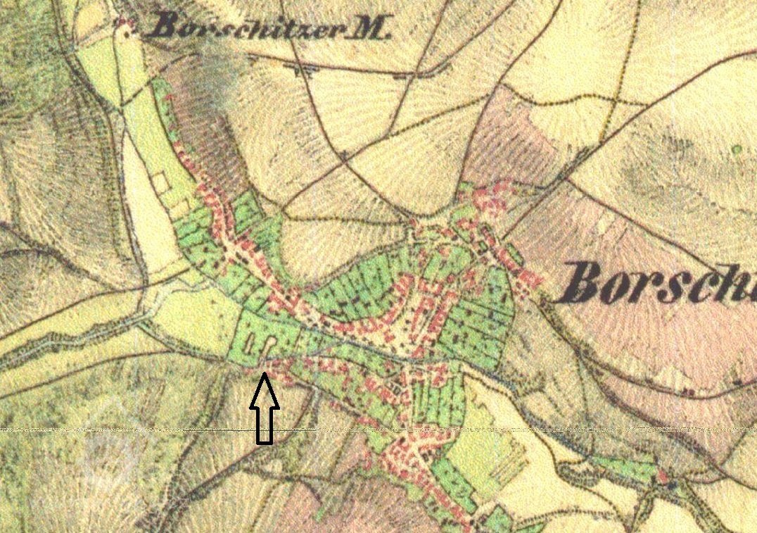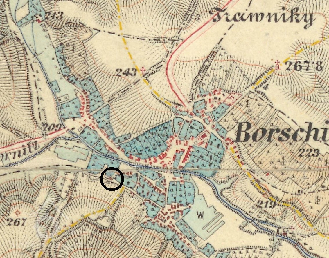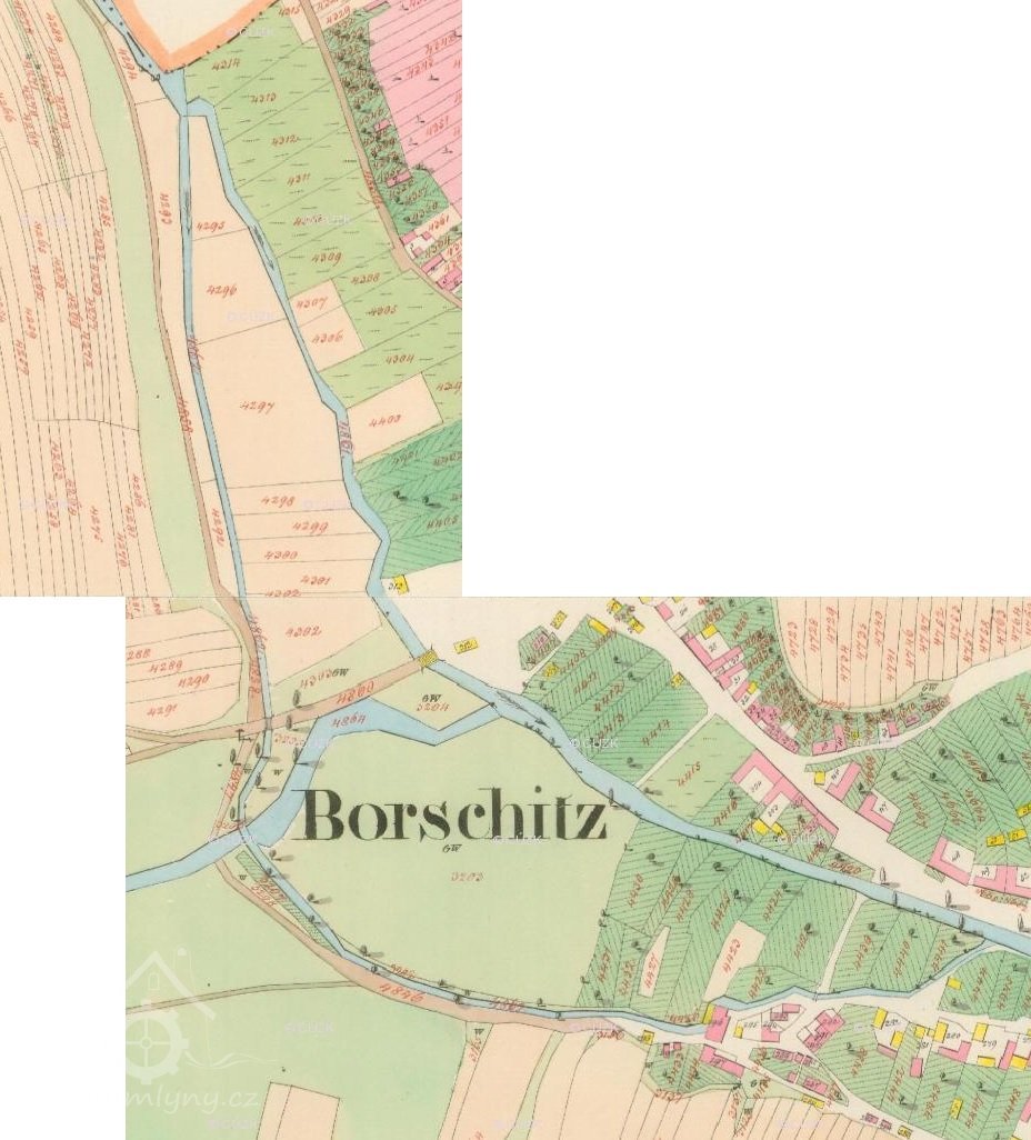 PopisV r. 1930 je mlýn v Boršicích č.p.75