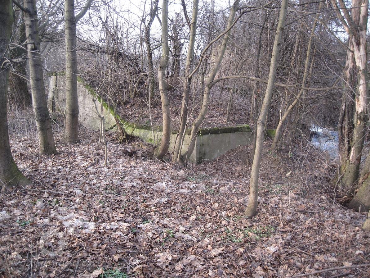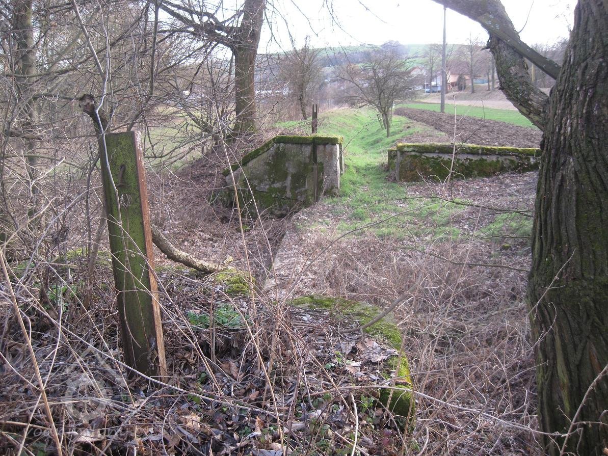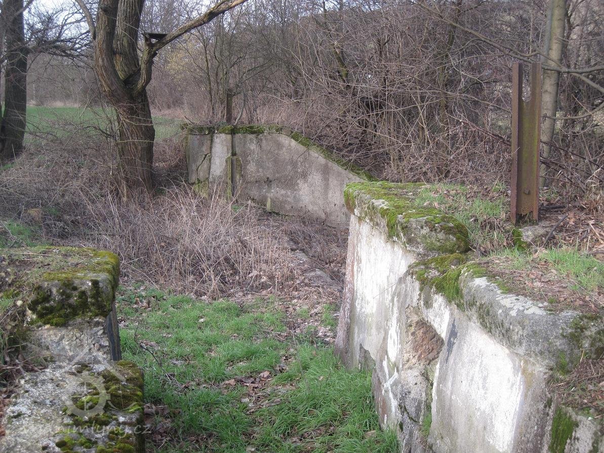 Jez kombinován s jalovým přepadem. Voda v náhonu musí překročit potůček (akvadukt).