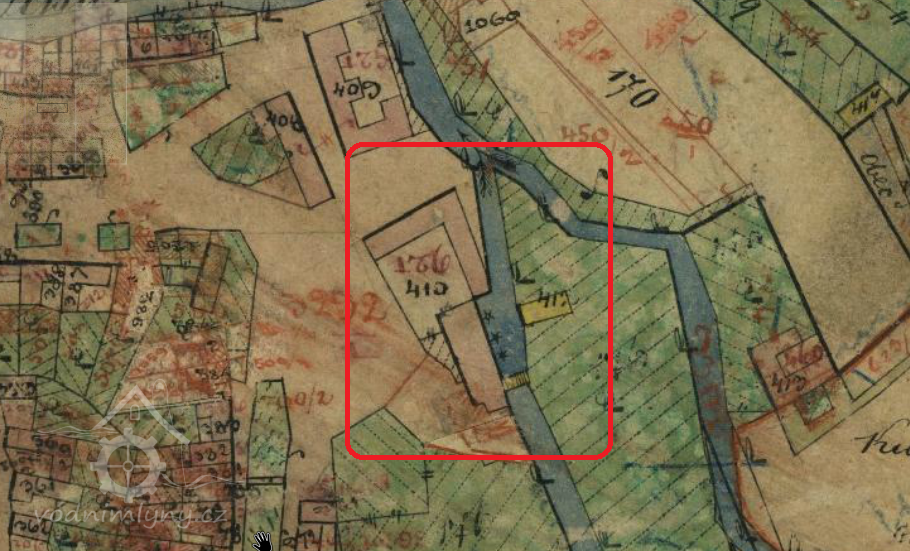 Využíval společný náhon s mlýnem v Míkovicích. Dochována pouze část náhonu mezi ulicí Na Zelničkách a cestou Ke Koupališti.