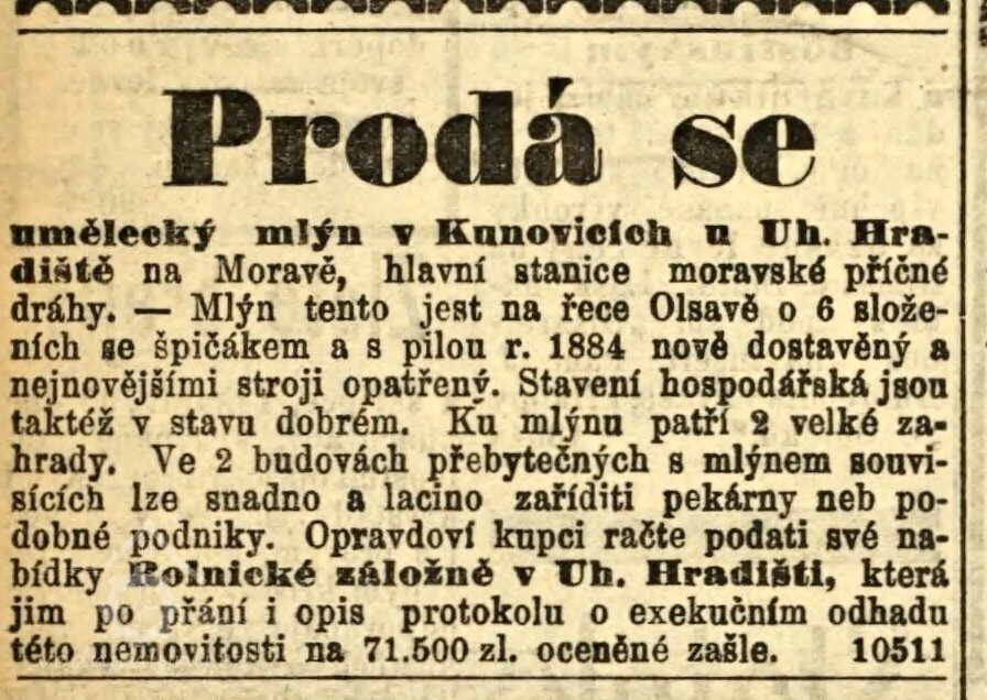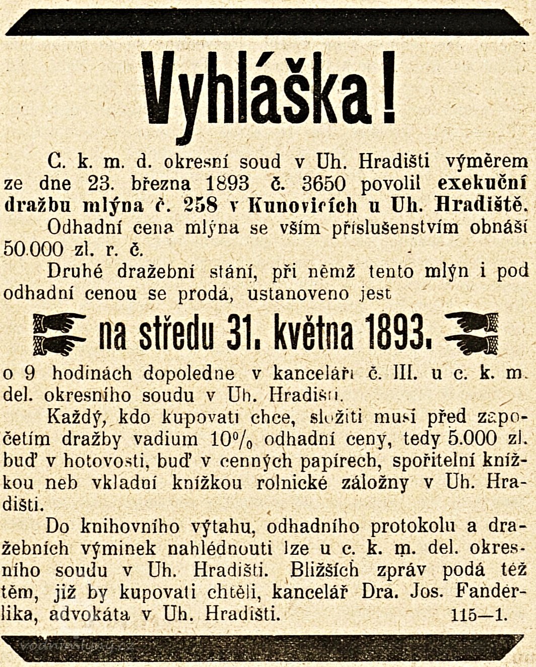 1893 - mlýn ve dražbě prodán Němčické rolnické záložně a spravován mlynářem Karlem Ottou