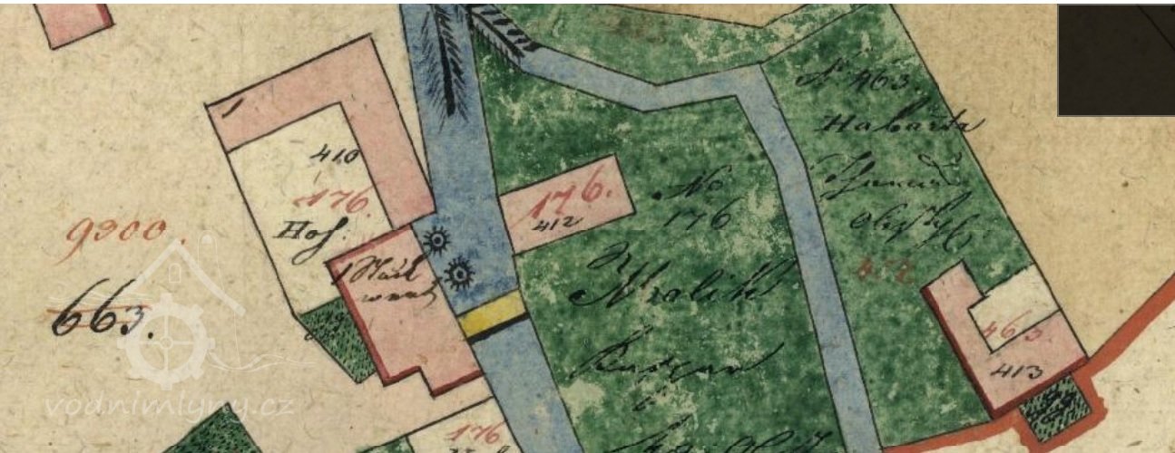 Popis1930: 2 turbíny Francis, 2 x hltnost 0,58 m3/s, spád 5,3 m, celkový výkon 62,2 HP