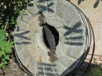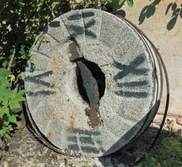 Na dvoře vedle dveří do mlýnice leží mlecí kámen.