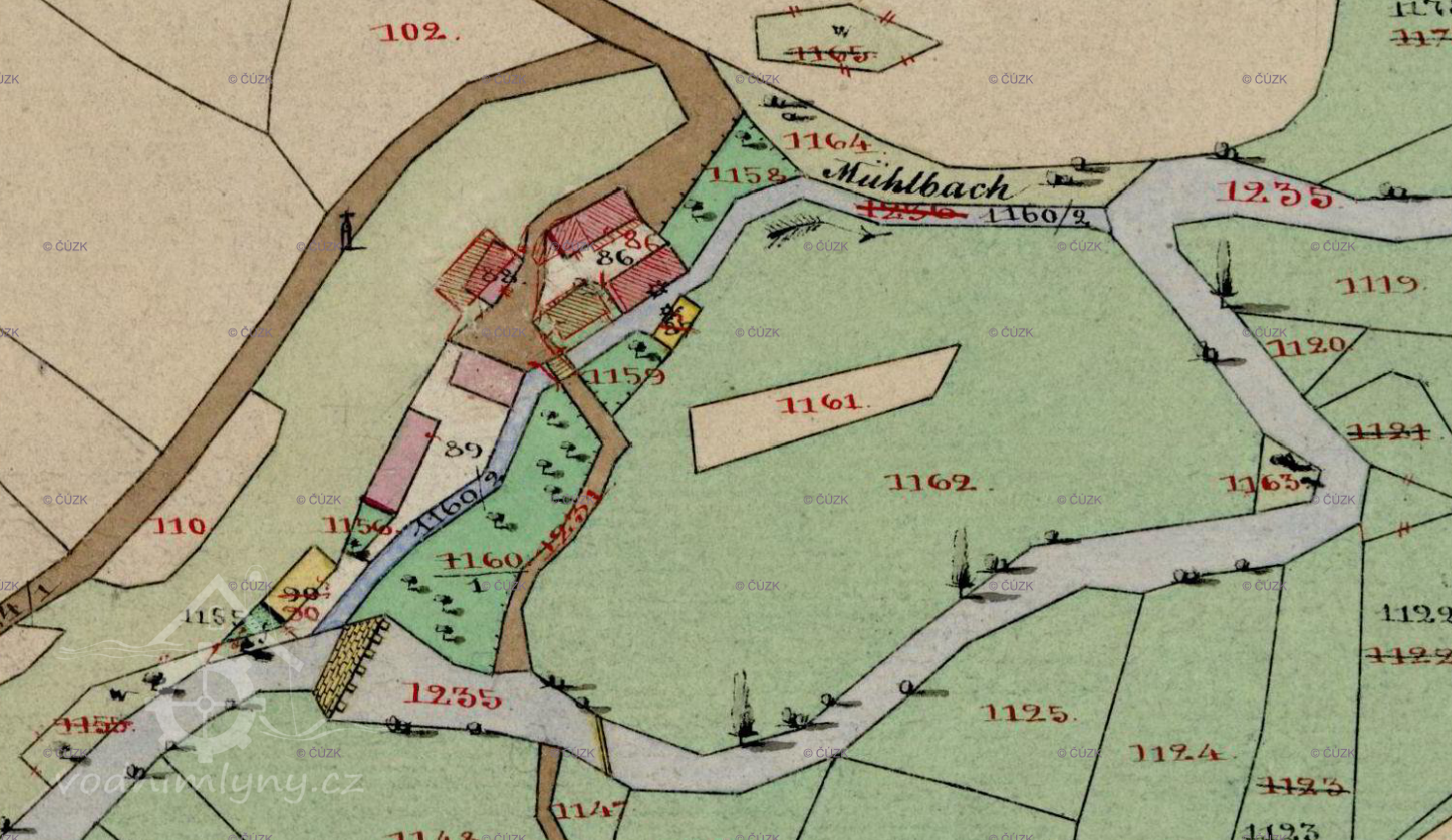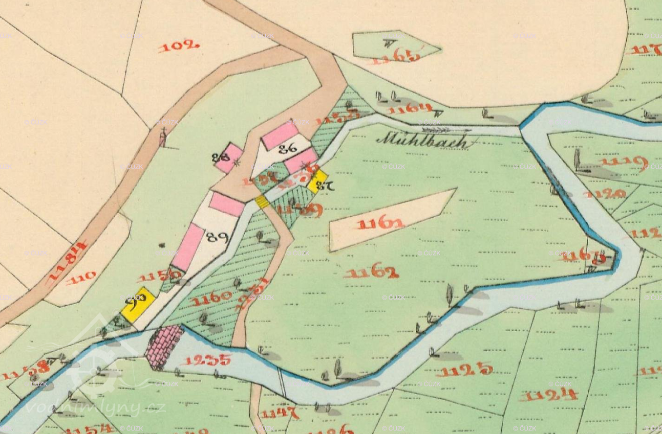 Popis1930: 1 kolo na svrchní vodu, hltnost 0,94 m3/s, spád 2,35 m, výkon 23 HP
