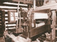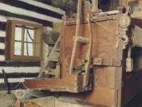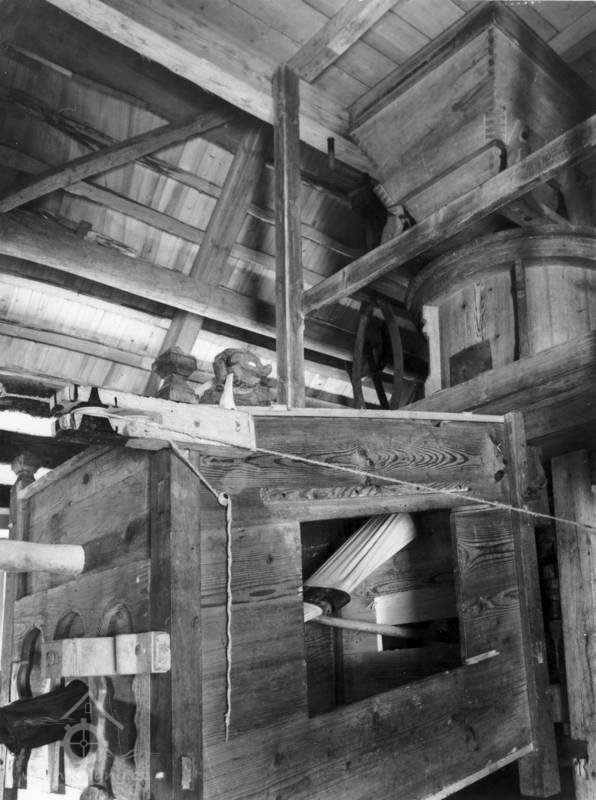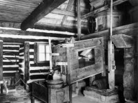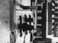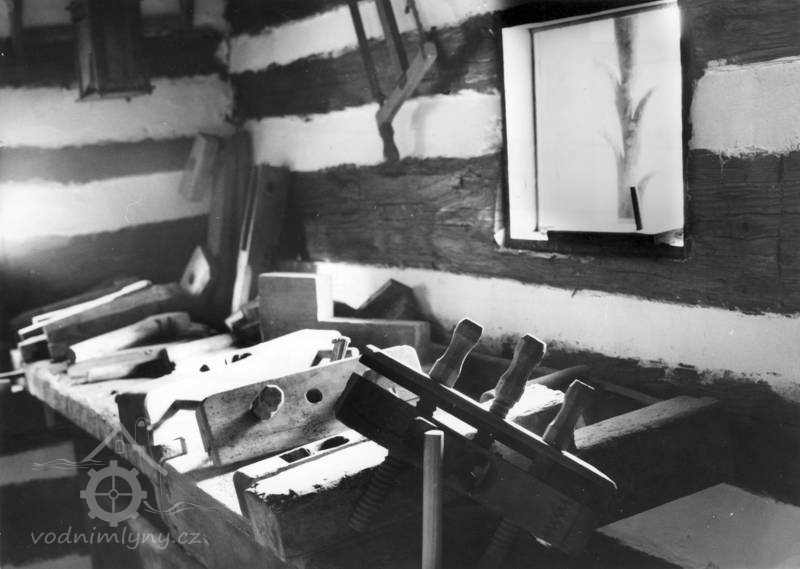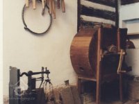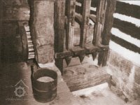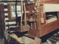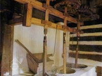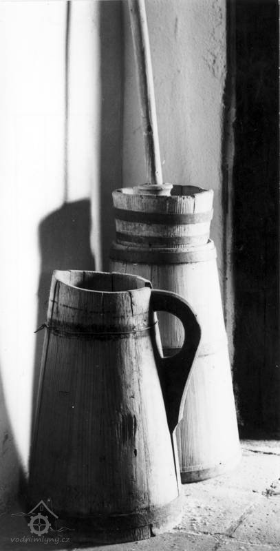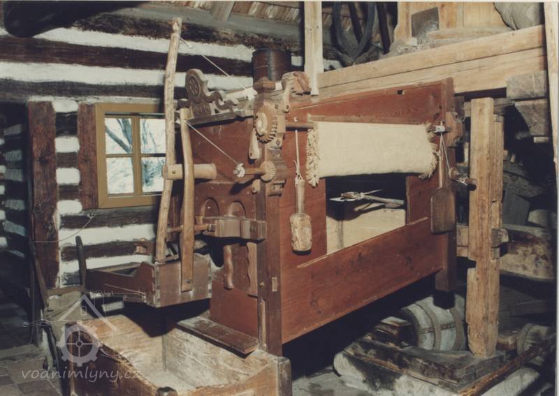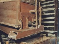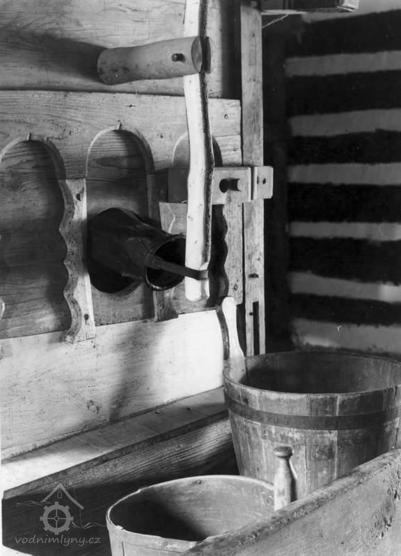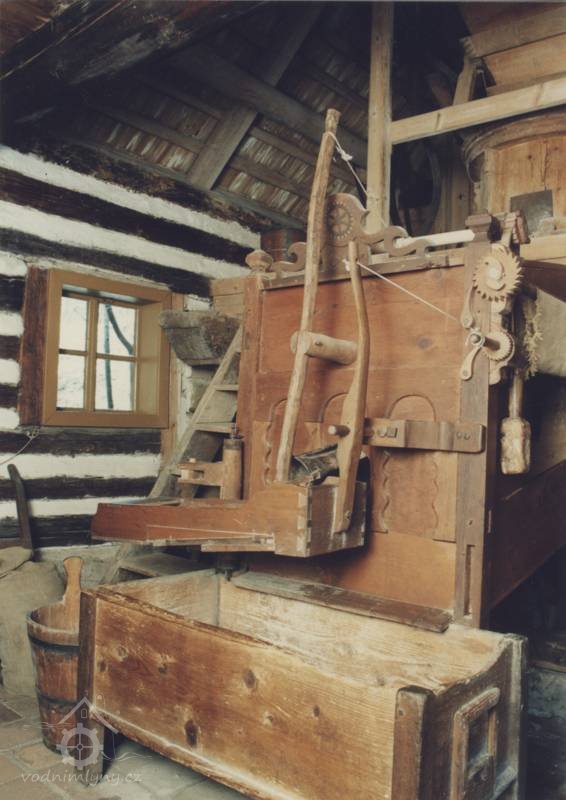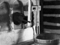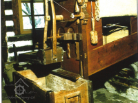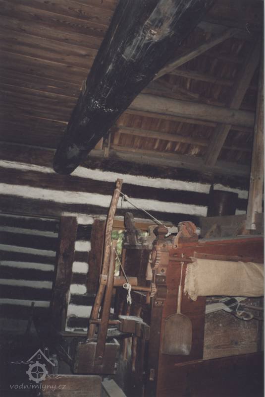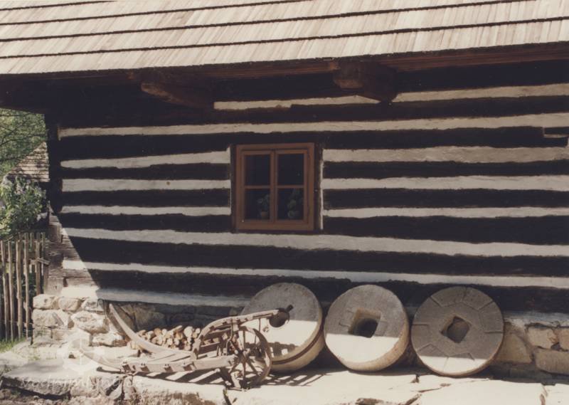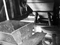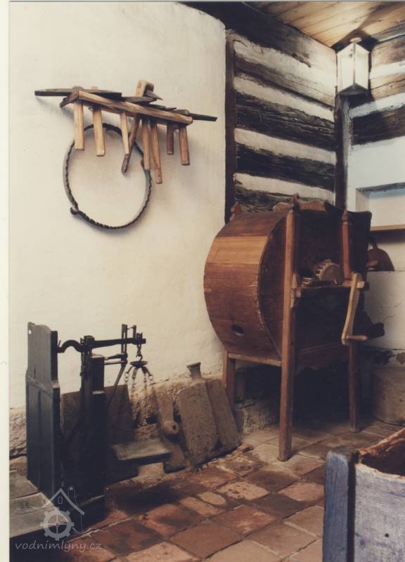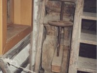 Vybavení části mlýnice (zleva dole) váha, náhradní kypřice, náhradní čep a čisticí mlýnek (fofr), 1999, © Jitka Svobodová, (Prvky na obrázku: váha)