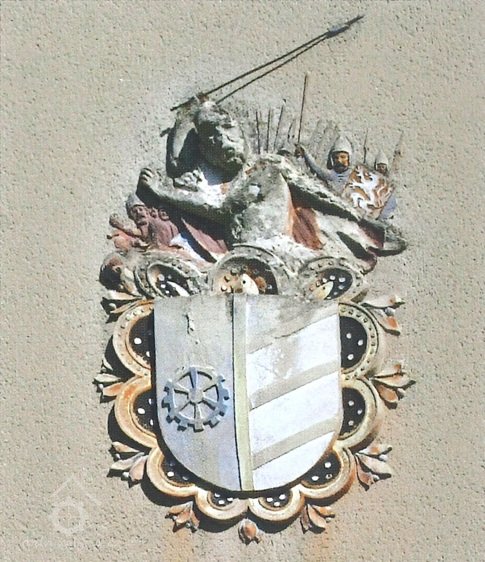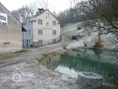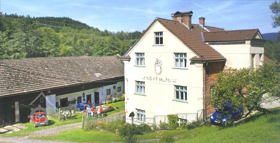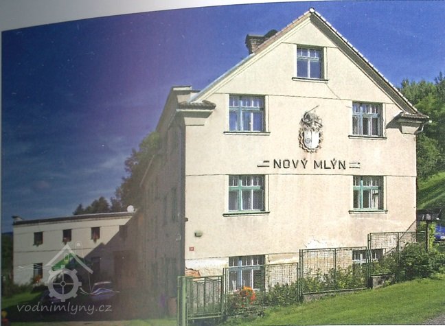 Na štítu obytné budovy je v omítce nápis NOVÝ MLÝN a nad nápisem mlynářský znak.
