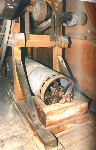 Instalace celého mlýnského zařízení zabrala přízemí a dvě nadzemní podlaží. Horizontální hřídel turbíny poháněla hlavní transmisi v přízemí. Od ní směřovaly řemeny jednak do mlecího patra pro pohon farncouzského kamene na šrotování, loupačky a válcové stolice a jednak do podstřeší, kde další řemen poháněl sekundární transmisi. Ta převáděla energii na stroje na čištění obilí, kapsové výtahy a vysévací sstroje v druhém patře a míchač mouky na mlecí podlaze.(MH)