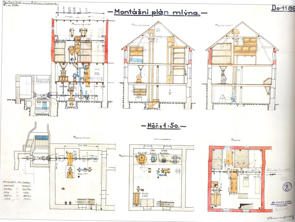 PopisV roce 1929 nahradila kola nová Francisova turbína s horizontální hřídelí firmy Prokop, projektovaná na spád 4,5 m, hltnost 300 l za vteřinu, při účinnosti 75 % dávala výkon 13,5 HP.