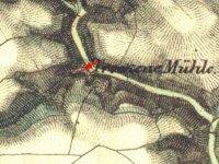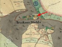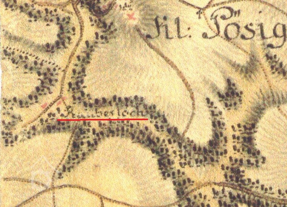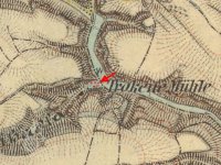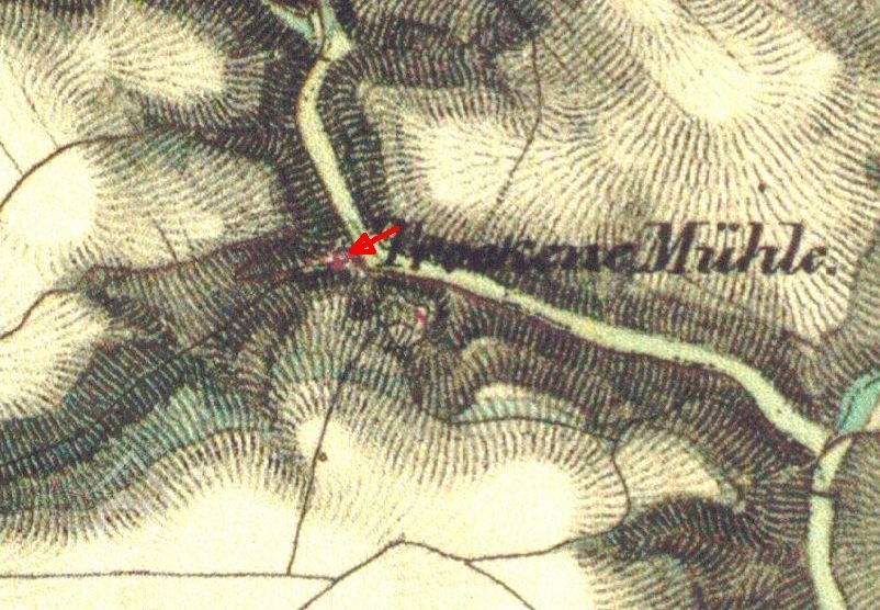 Na mapě I. vojenského mapování z let 1764 – 1768 není objekt zakreslen jako Suchý mlýn, ale jako „Loupežnická díra“ (Rauberloch). Možná to souvisí s pověstí o loupežnících, kteří zde ve mlýně měli bydlet a mlynář měl být jejich hejtmanem– viz pověst a historické mapy. (MH).