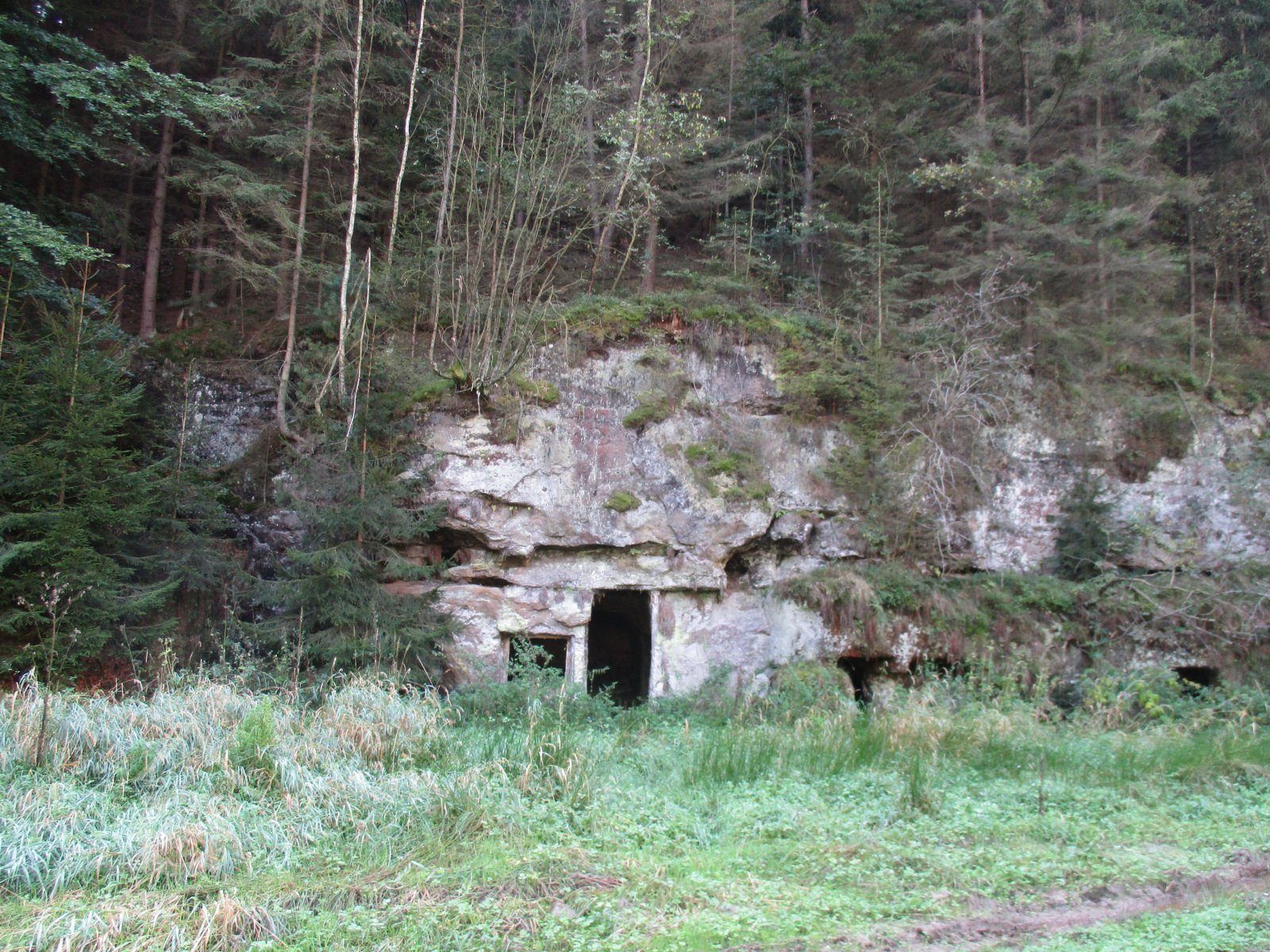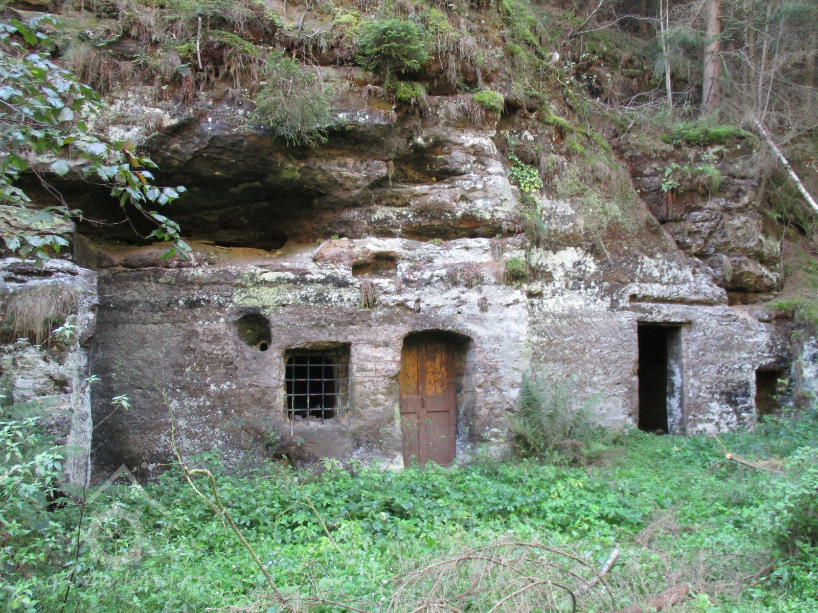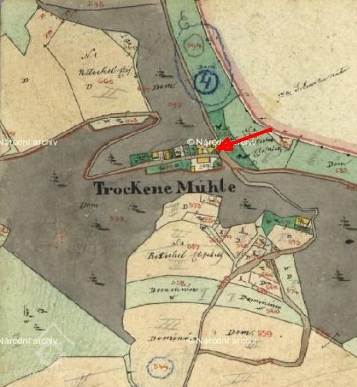 V roce 1927 popsal místo Karel Sellner, archeolog, spisovatel a učitel z obce Březovice: „Jsou zde tři stavení přitulená ke skalám, v nichž jsou vytesány chlívky a sklepy. Také zde spatříme zbytky zříceného baráku….“ Také Karel Sellner zmiňuje pověst o loupežnících v Suchém mlýně. (MH)