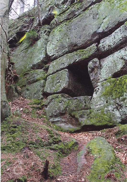 Obydlí mlynáře bylo stálo na skále nad tunelem, vedly k němu schody vytesané ve skále (MH)