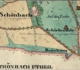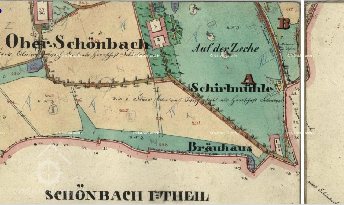 Schirlův mlýn, náhon podél cesty z Lubů do Saska.
