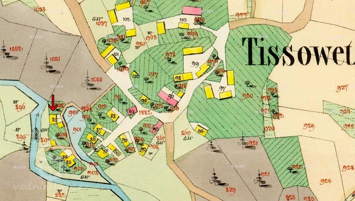 Mlýn stál přímo ve vsi již před rokem 1704.