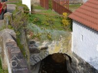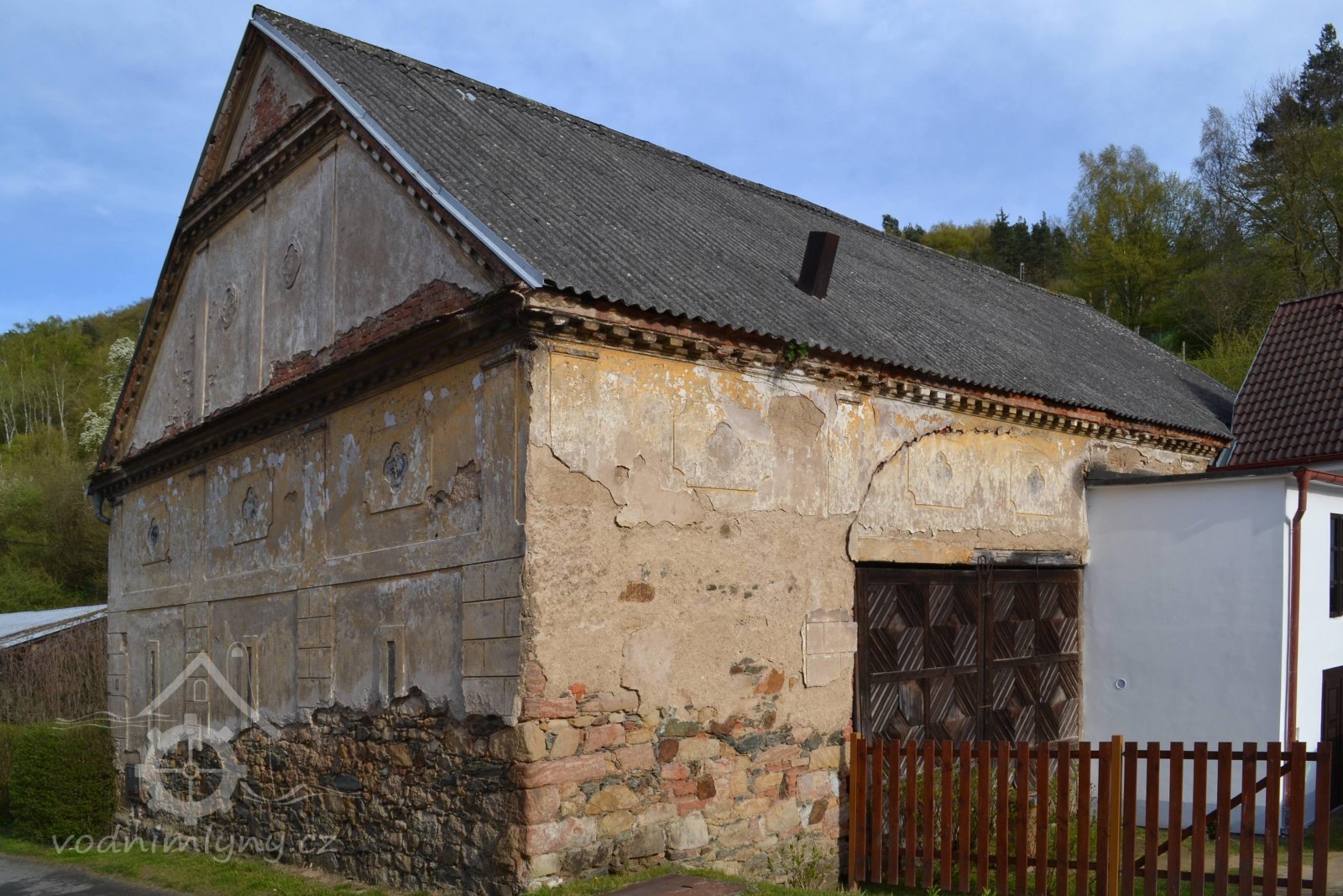 Pod stodolou protéká klenutým kanálem potok ze Zábělé.