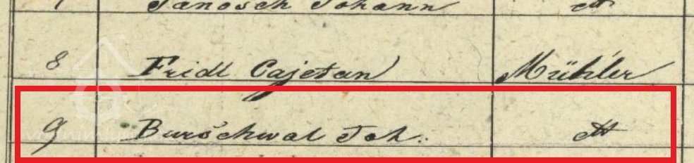 1855 Valentýn Hanyk (1840-1845 na Velkém mlýně v Cetechovicích) s manželkou Marií, dcerou Jana Paichla, mlynáře v Cetechovicích a Kyselovicích (svatba 1839)