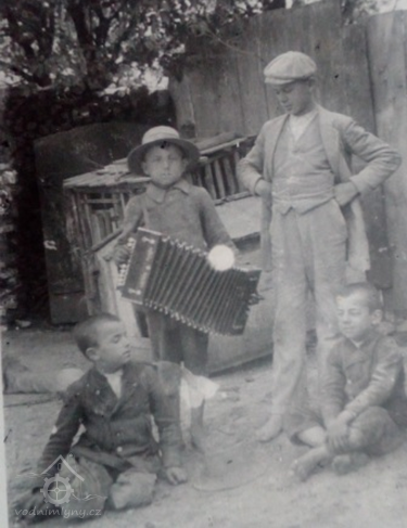 Bratři Josef, Jan, Bohumil a Oldřich Vávrovi na dvoře mlýna, 1917, © Archiv rodiny Vávrů a Šalšů
