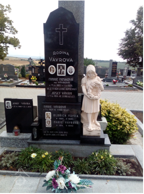 Hrob rodiny Vávrových na hřbitově v Kostelci, 2018, © Eliška Dušková, (Prvky na obrázku: náhrobky, pamětní desky)