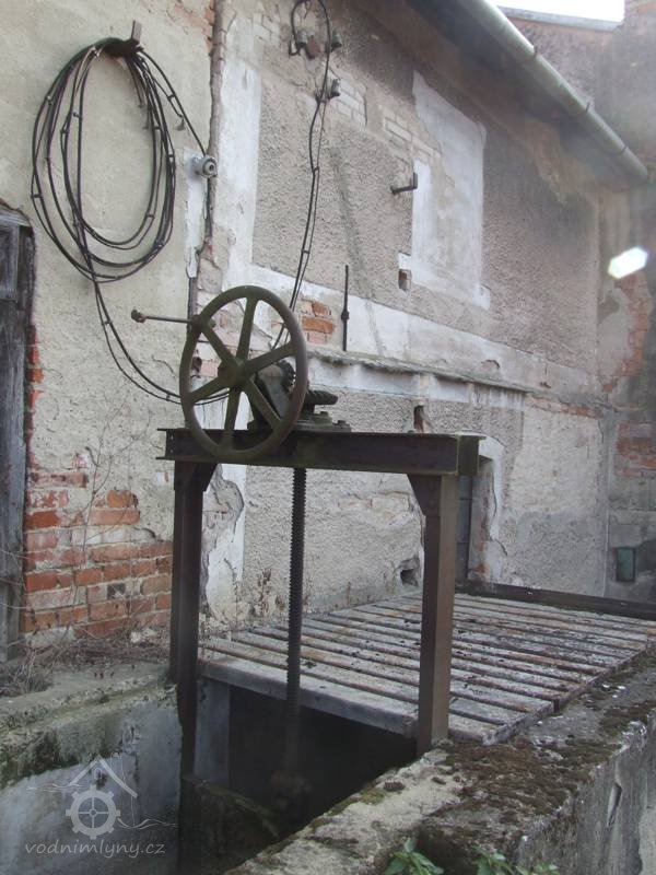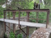 Lávka nad jezem, detail ovládání stavidel, květen 2016, © Dušan Žatecký, (Prvky na obrázku: jez)