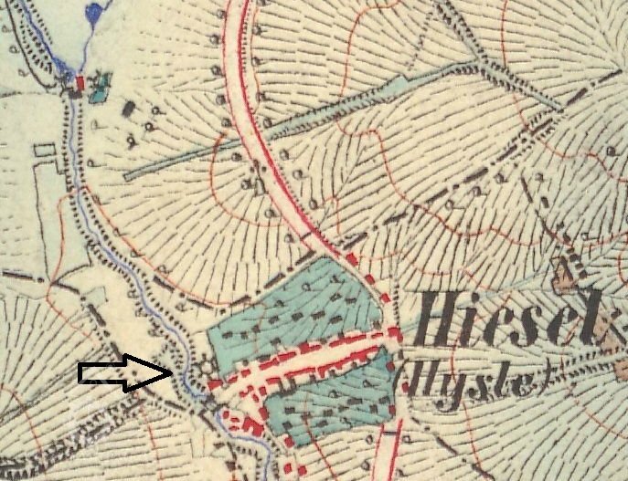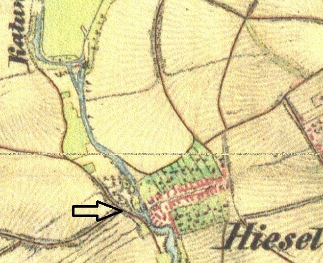 II. voj. mapování, mlýn (budova zakreslena, ale značka chybí) a vodní dílo, 1836-52, © http://oldmaps.geolab.cz/