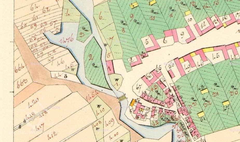Indikační skica, mlýn, 1827, © http://archivnimapy.cuzk.cz/