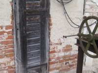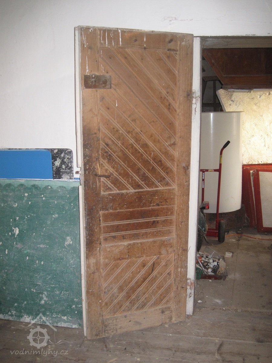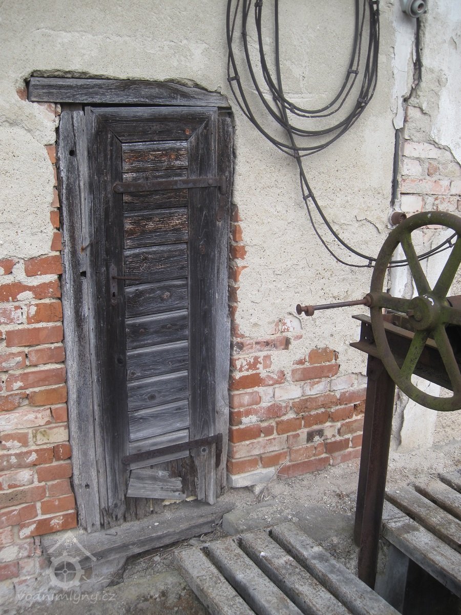 Dveře v západní stěně mlýnice umožňující přístup do prostoru před vodním motorem, květen 2016, © Dušan Žatecký, (Prvky na obrázku: dveře)
