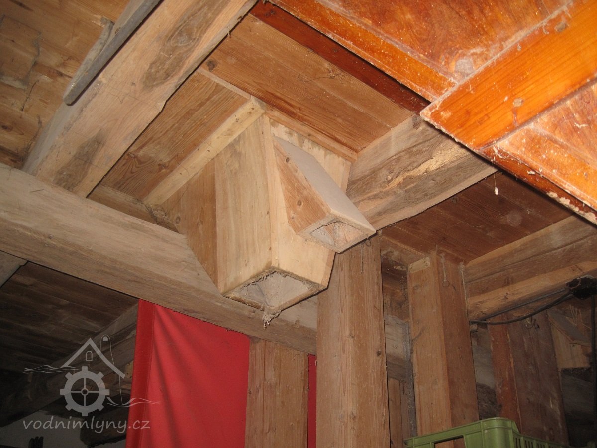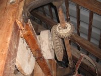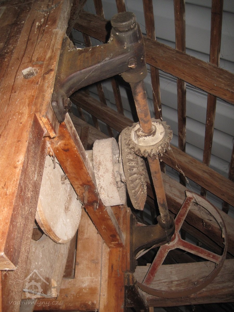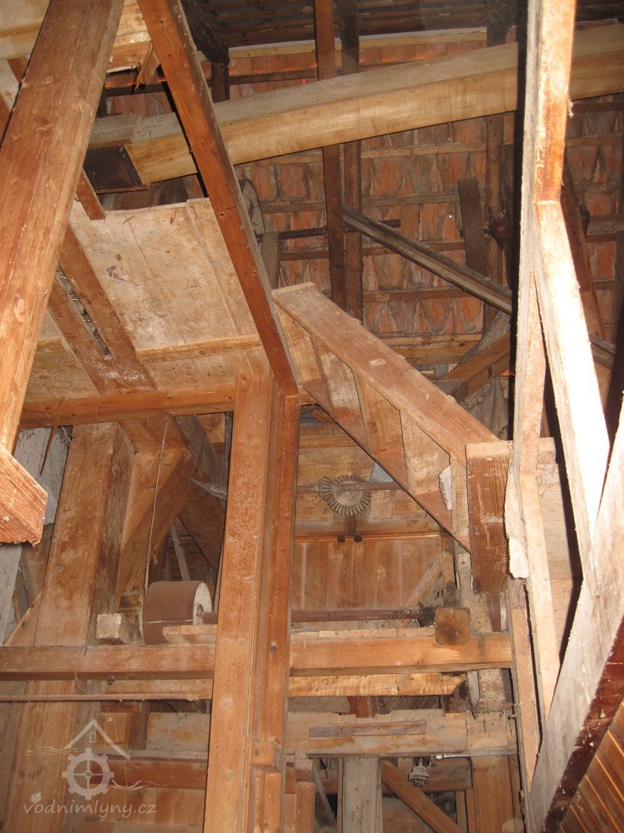 Patro jižního dílu severní části dnešní budovy, květen 2016, © Dušan Žatecký, (Prvky na obrázku: transmise, řemenice, převody)