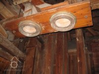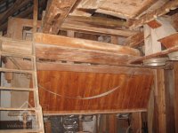 Podstřeší jižního dílu severní části dnešní budovy - vlevo zeď oddělující severní a střední část dnešní budovy, květen 2016, © Dušan Žatecký