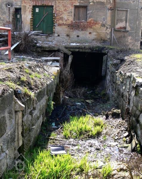 Neudržovaný mlýn, přestavěný na továrnu, stojí nedaleko zámku na severním okraji města.