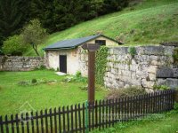 Ze mlýna zůstala jedna zděná budova na vysoké kamenné podezdívce a zbytky sklepů.