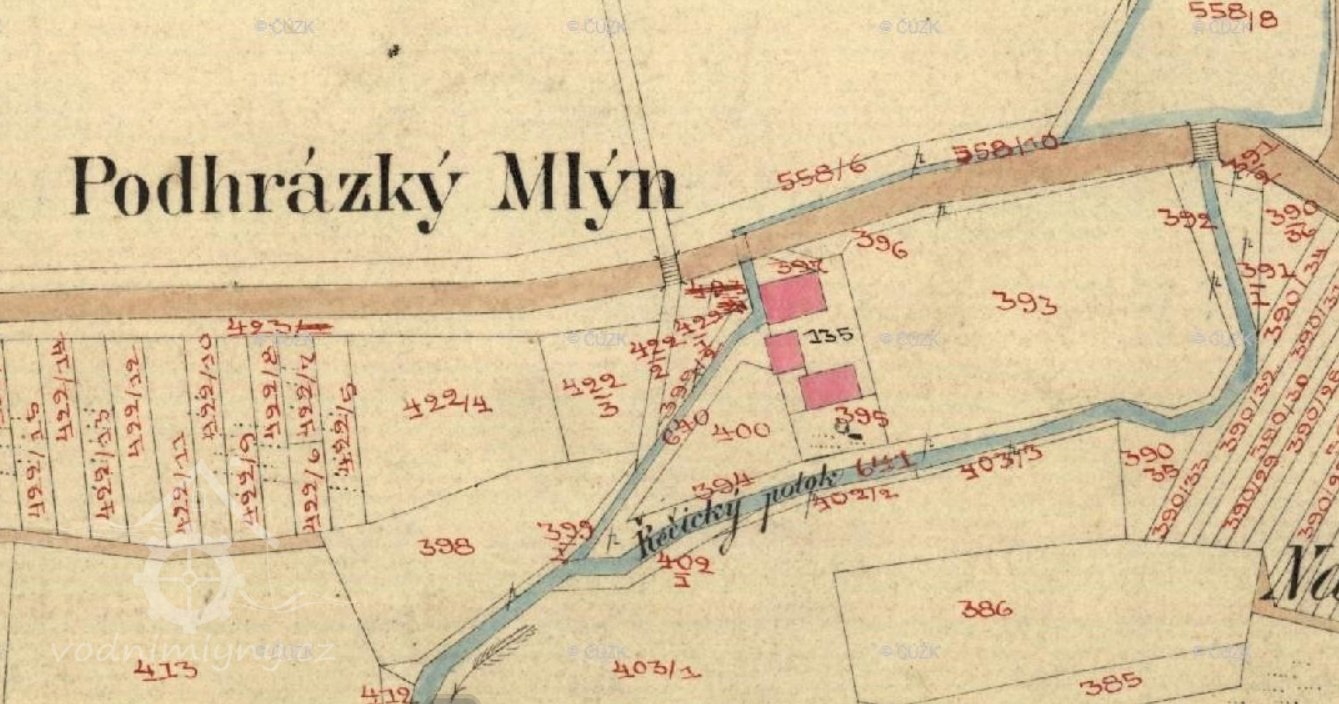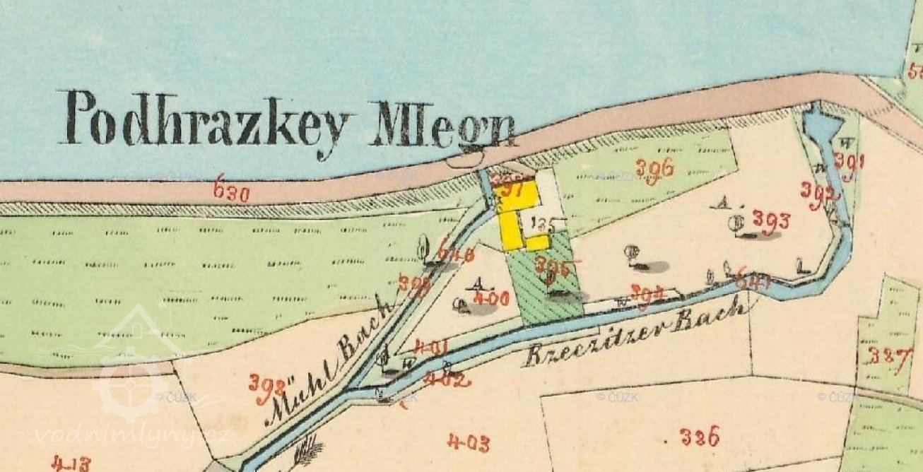 1852 hrabě Alfred Aichelburk nechal vypustit rybník a zřídil tu jen nádržku. Mlýn prodal Josefu Kotykovi.