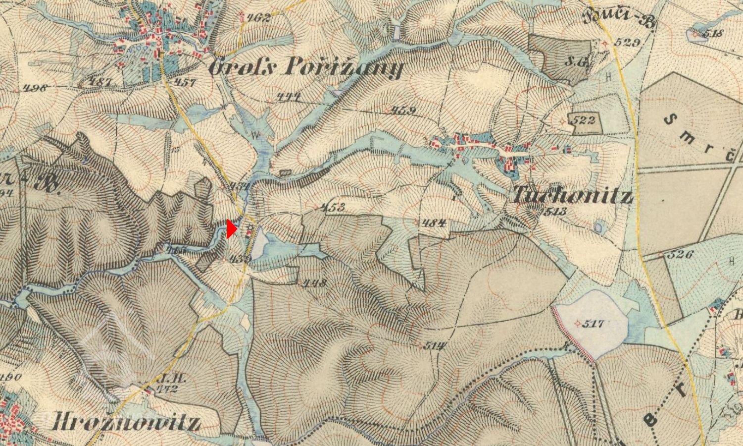 1932 - mlýn Tuchonice 13, Josef Rada, jedna turbína Francis s dvoj. spirál., průtok 0,075 m3/s, spád vody 6,9 m.
