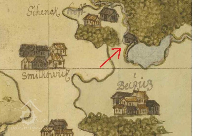 PopisBylo zde vodní kolo na svrchní vodu průtok 80 l/s, spád vody 5m, výkon 4 HP