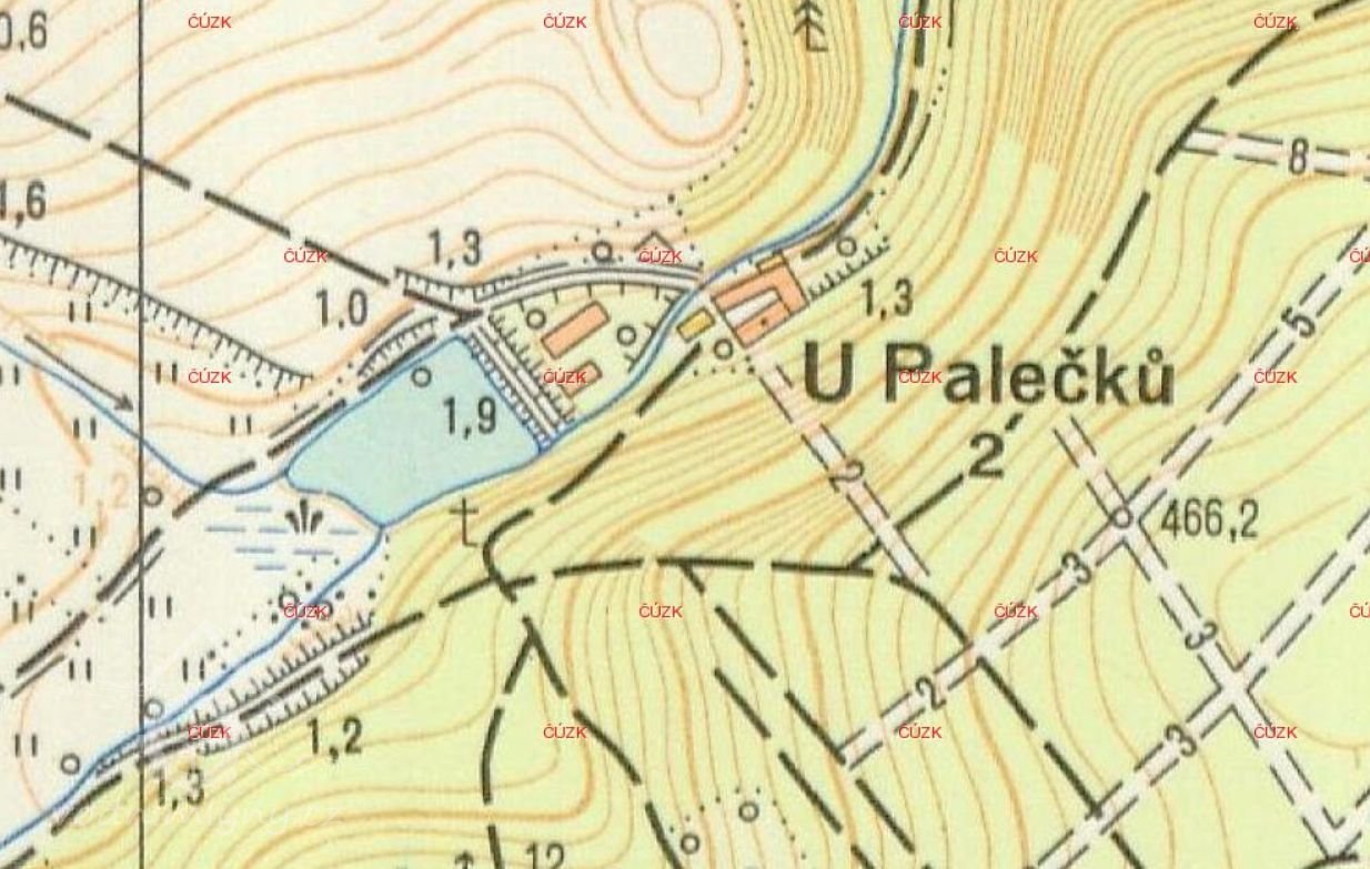 1930 – Václav Boček, mlýn na rybníce Paleček, 1 kolo na svrchní vodu, průtok 80 l/s, spád vody 450 cm.