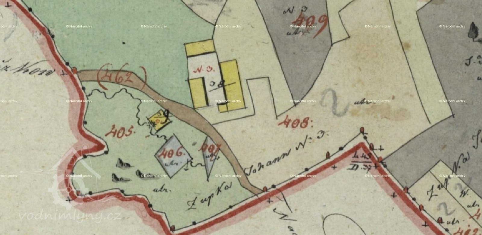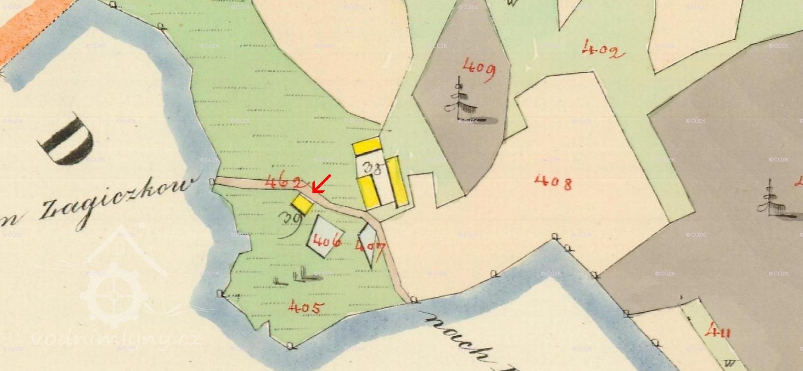 Popis1930: 1 kolo na svrchní vodu, hltnost 0,067 m3/s, spád 4,95 m, výkon 2,87 HP