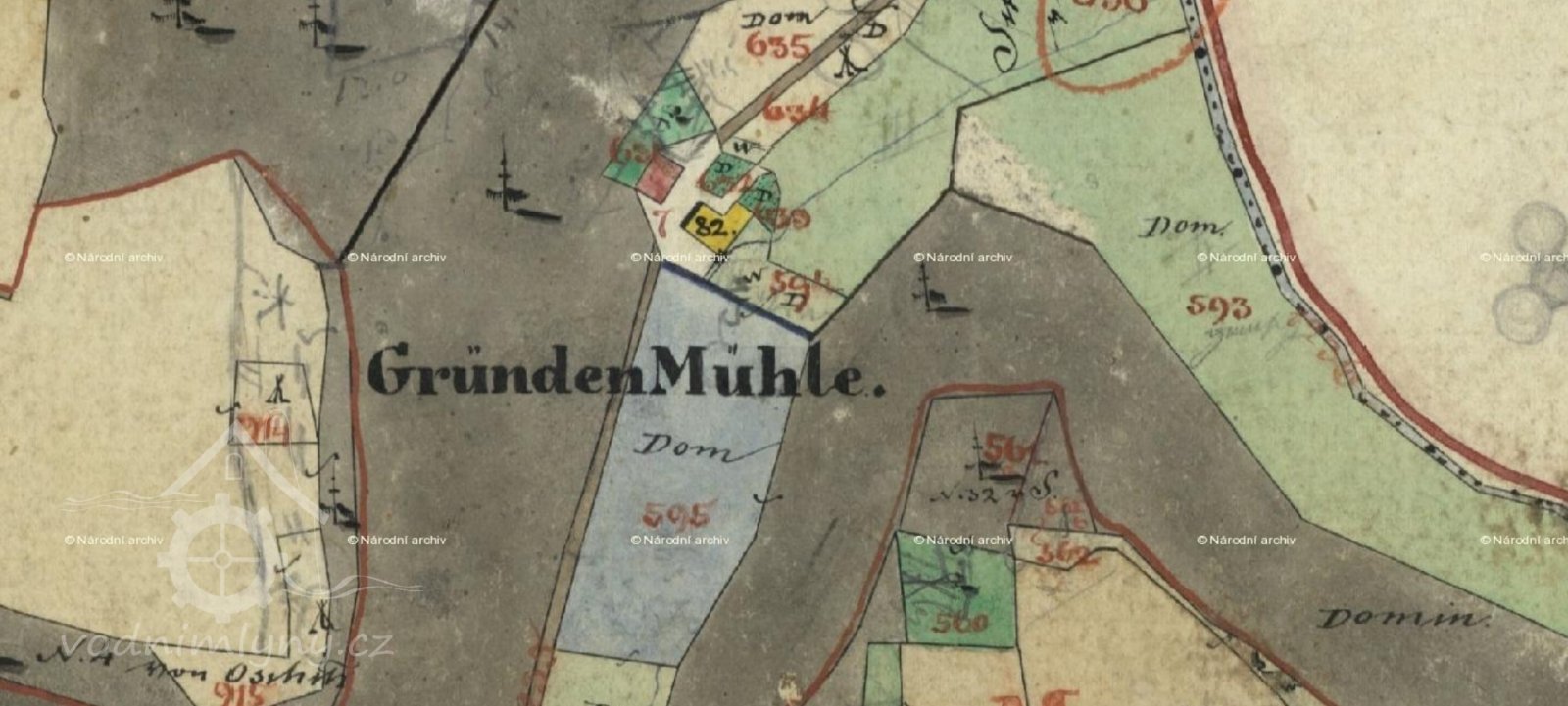 1713 dominikální fase - mlýn s 1/2 kola (nestálá voda)