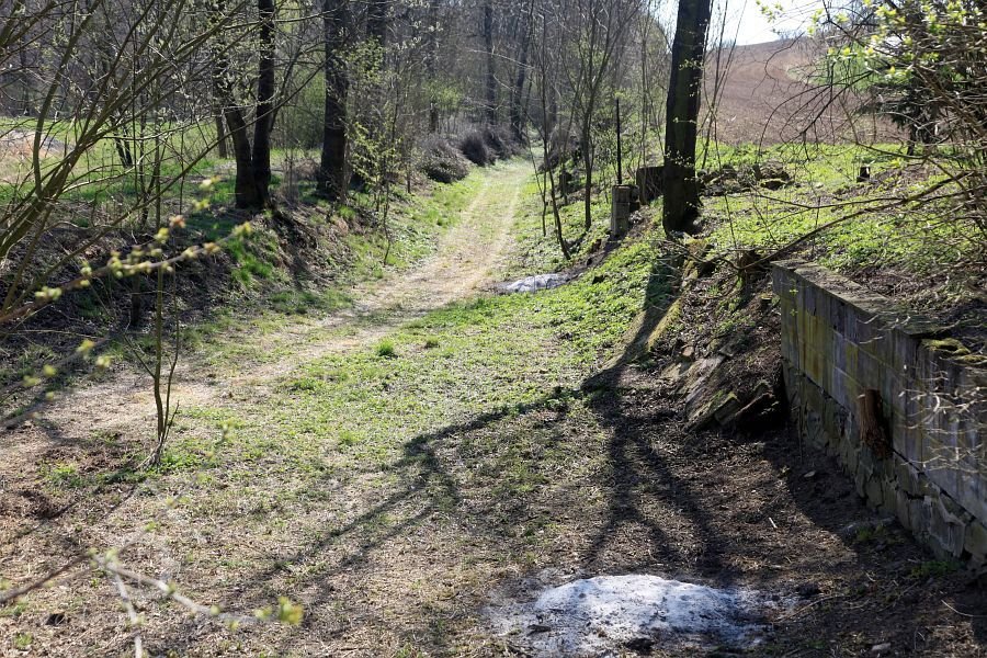 Zachovalý náhon se stavidlly, zbytkem turbínové kašny a odtokový kanál