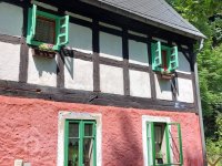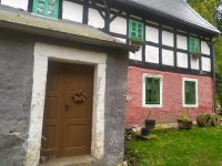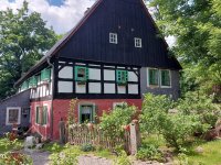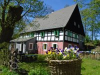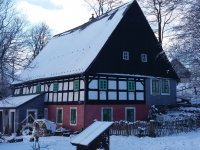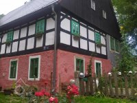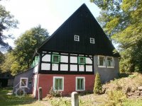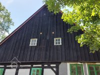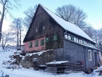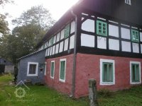 Lidová architektura obdélná, patrová, o 4 osách ve štítové stěně, se sedlovou střechou (eternit) a bedněným štítem. V přízemí zděná, v patře hrázděná. Před bočním vchodem představena přízemní zděná předsíň s pultovou střechou.