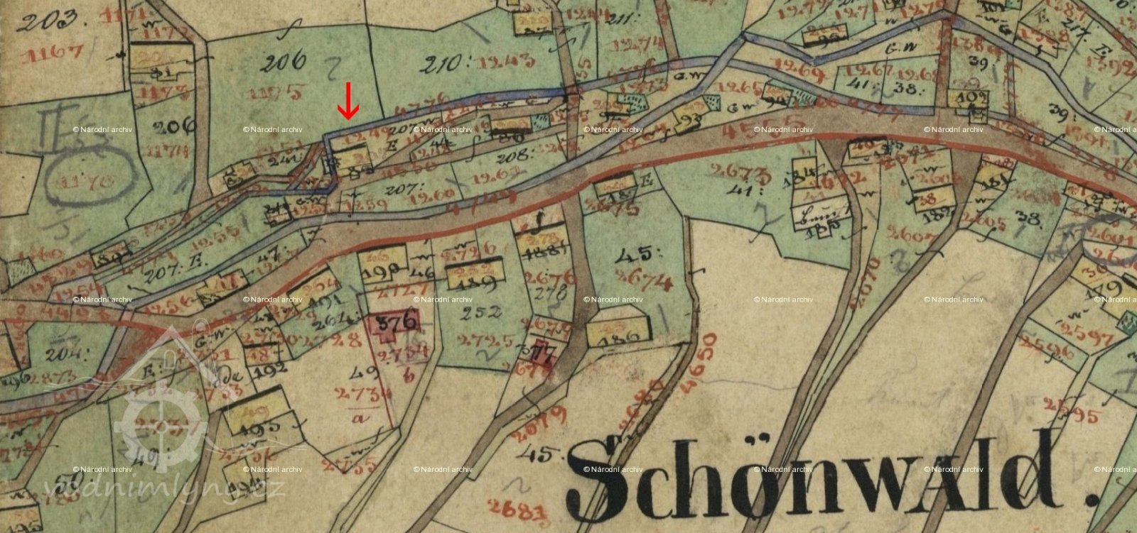 V první berní rule z roku 1654 najdeme v Krásném Lese: "4 mlýny. Ty vlastnili Benedikt Nitsche 63 (37), Georg Friedel 180 (103), Mathes Krehsche 89 (53) a MARTIN RITSCHEL 207 (123)". (Čísla označují nová čísla domů od r. 1812, ta v závorkách čísla od r. 1771).