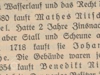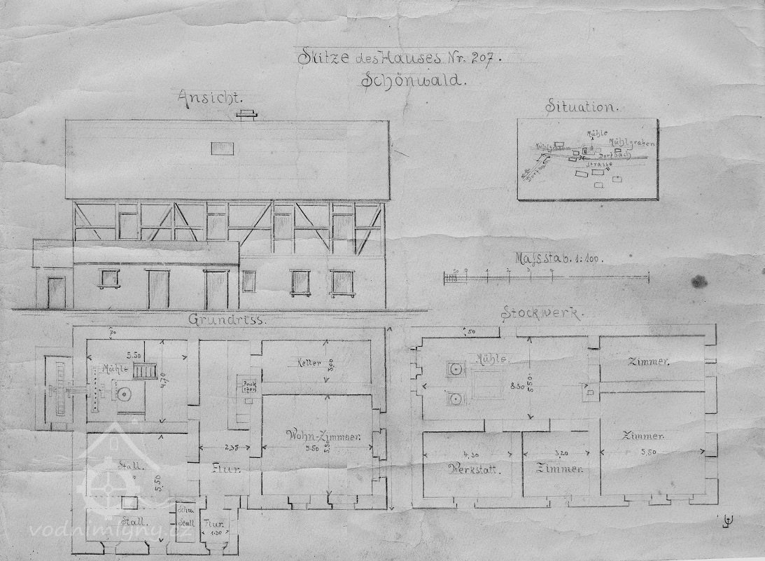 Další zmínka, která se váže k tomuto vodnímu mlýnu, je už z roku 1680. Tehdy jej ve zdevastovaném stavu koupil MATHES NITSCHE od MARTINA RITSCHELA. Po dva roky měl minimální příjem, mlýn v podstatě opravoval a musel přistavit stodolu a stáj. V roce 1718 jej prodal Johannovi Ritschelovi, tehdy již byl funkční, budovy stojící. (Zdroj: vlastivědné literatura, Mlýny v Krásném Lese - Die Mühlen zu Schönwald - autora Rudolfa Köhler v Beiträge, rok 1934).
