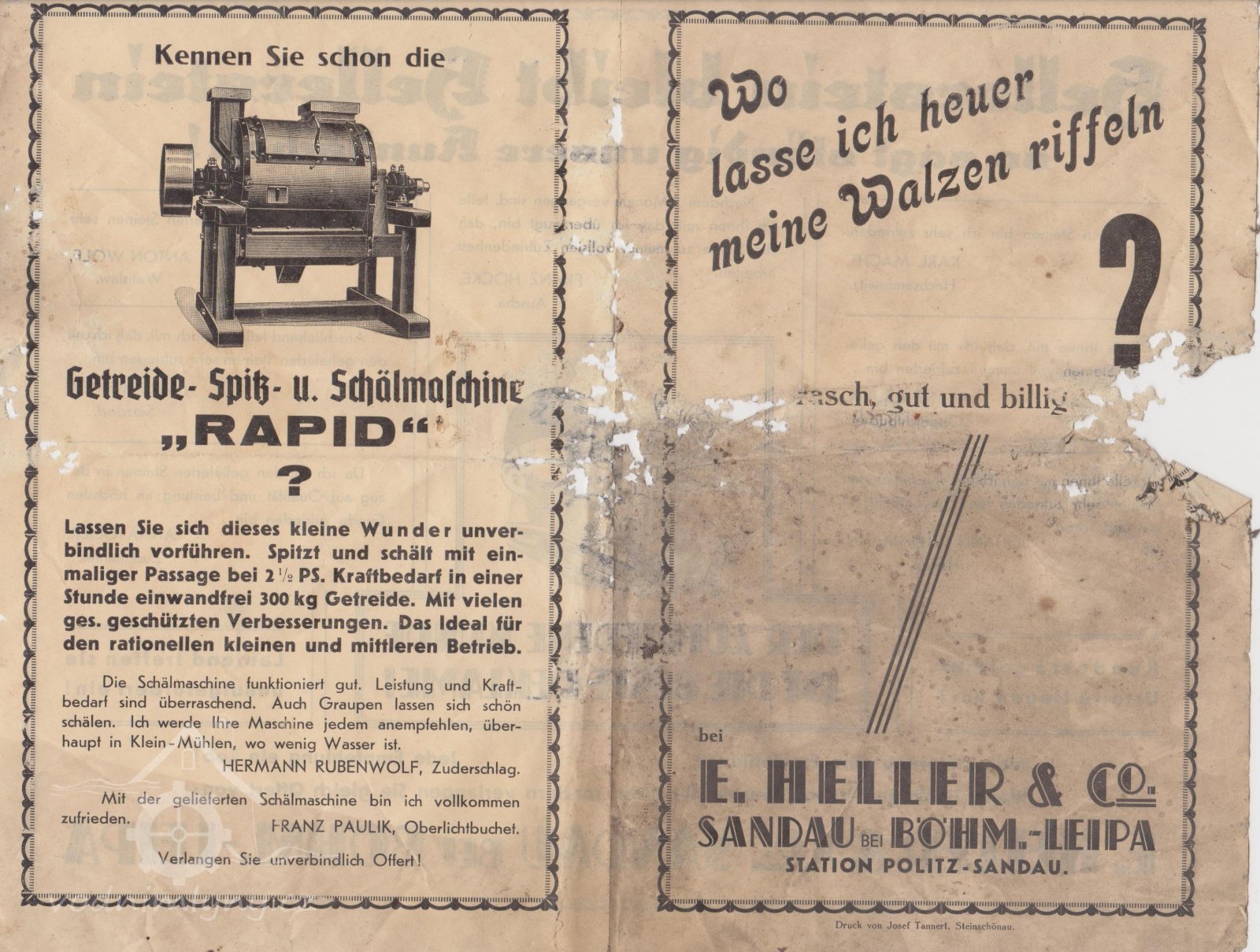 Anton Samesch, národností Němec, byl poslední mlynář, za kterého se zde mlelo obilí. Jako poslední je doložen je rok 1946.