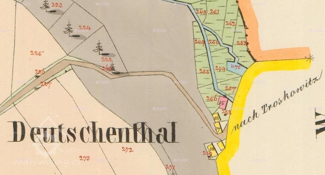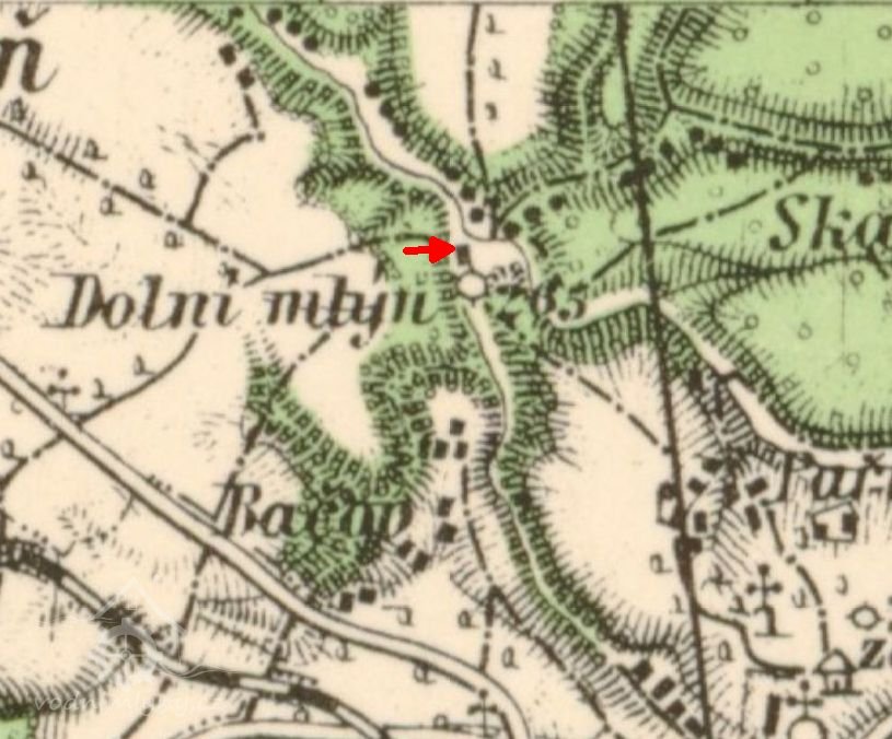 v tereziánském katastru uveden mlýn o jednom kole se stoupou, majetku panství Kost