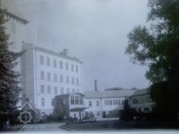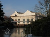 Fotografie přes vodní tok zachycuje komplex budov mlýna z opačné strany, náhony a kanály ho totiž obklopovaly z obou stran. Obrazy by pak byly malovány z břehu kanálu, kterému se říká Černá struha. Této poloze na obrazech odpovídá šíře toku, vysoké břehy, stromoví vlevo v pozadí na obraze Chalupy z NG i vzdálenost budov mlýna. Na místě stodol jsou dnes průmyslové objekty nejspíš z poválečné doby, kdy zde sídlil podnik Kara, které zakrývají i přímý pohled na mlýn.