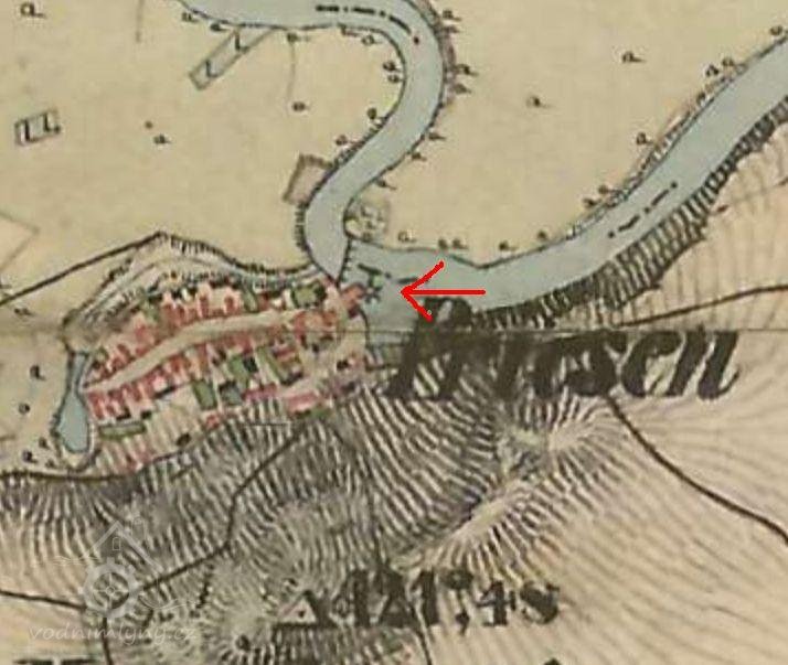 Malá vodní elektrárna Březno u Loun. Vybudována okolo roku 1918(?).