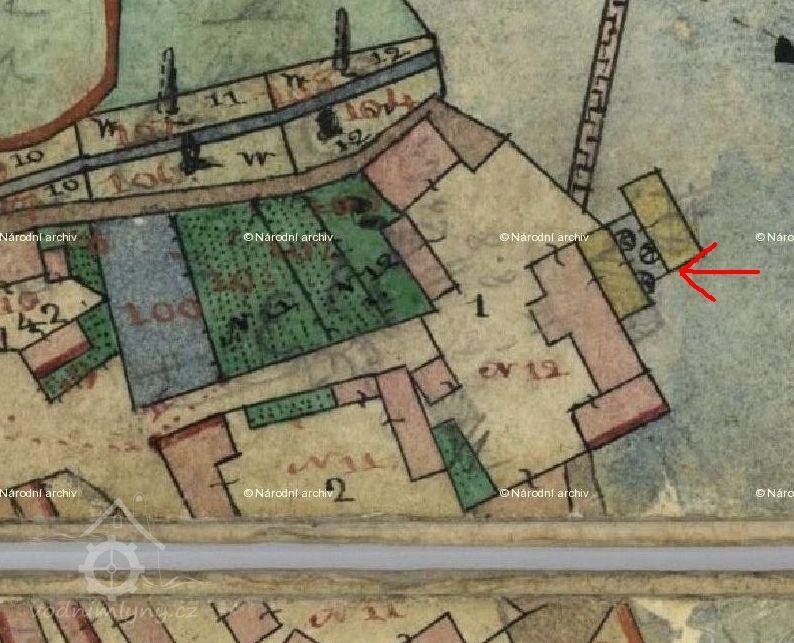 Na indikační skice z roku 1843 je již objekt zásadním způsobem přestavěn a rozšířen na areál s mlýnem o 3 kolech, majitel Josef Kupf.