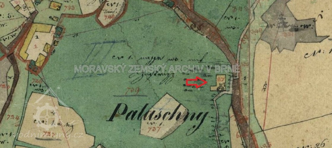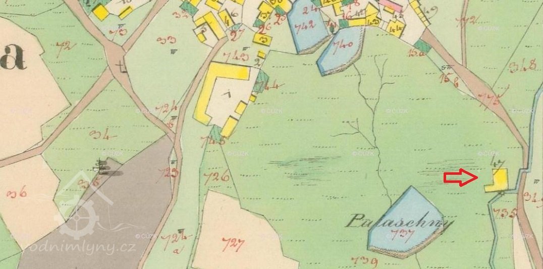 Popis1930: 1 kolo na svrchní vodu, hltnost 0,091 m3/s, spád 3,8 m, výkon 3 HP
