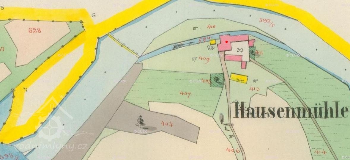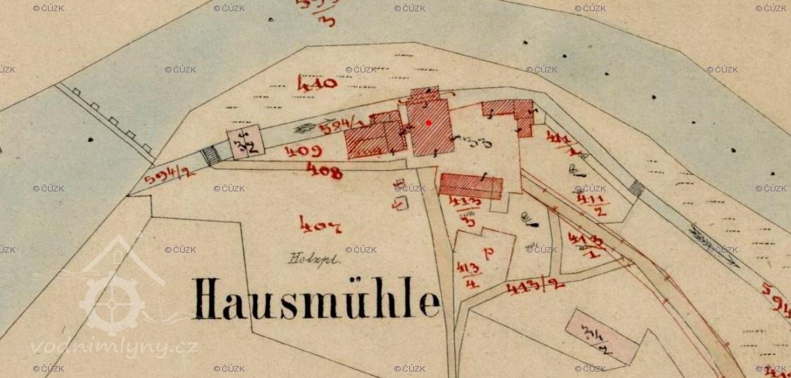 Mlýn náležel původně pod Lhotku, 1930 zde byla v provozu pouze pila.