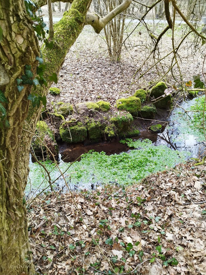 Druhé stavědlo asi 150 m před mlýnem, 6.4.2018, © Vladimír Kraus, (Prvky na obrázku: náhon, stavidlo)