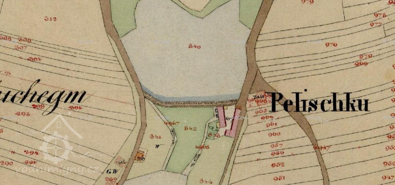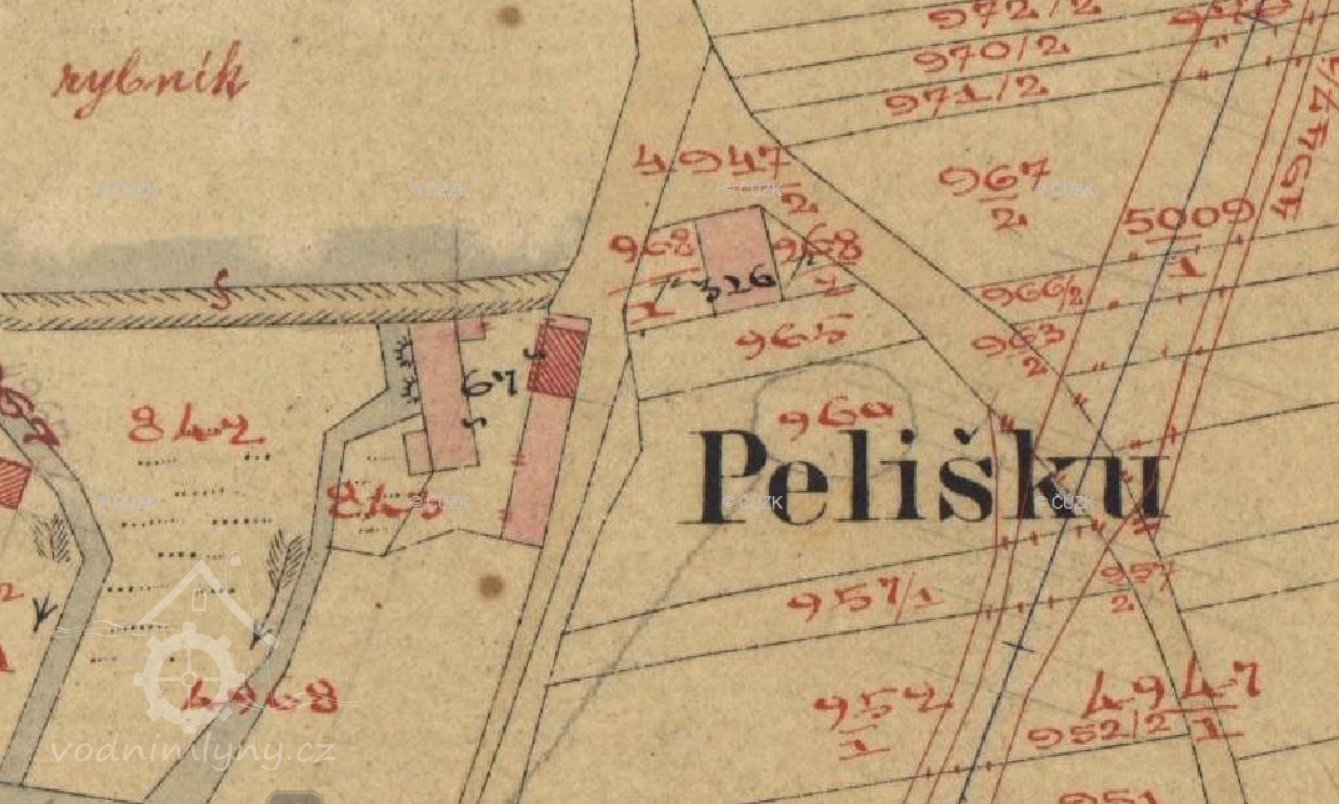 Z rybníka se voda pouštěla stavidlem a dřevěnými vantroky na vodní kolo, po vykonání práce odtékala voda otevřenou struhou do vodoteče, do rybníka nad dalším mlýnem. -- D.V.