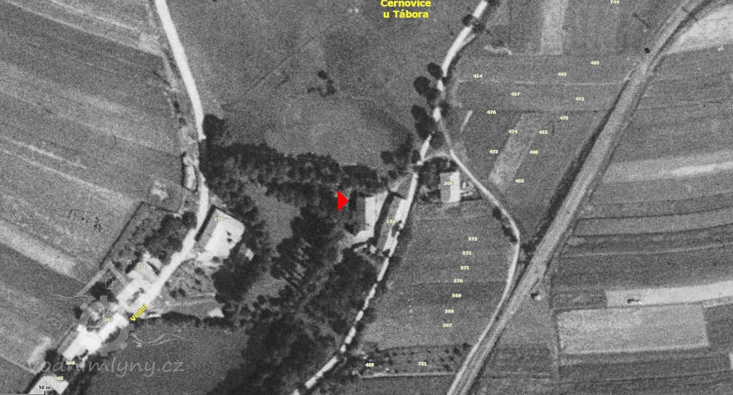 Dle protokolu ze dne 21.7.1897 č. 27758 nalétá se tento mlýn na vzniku černovického potoka při mlýnské nádržce č.parc.840 v Černovicích. Má jedno složení jenž se uvádí do pohybu vodním kolem o průměru 3 m a šířce 0,64 m na horní vodu. Stavítko závodní je 0,3 m široké a 0,26 m vysoké. U nádrže je jalový splav s 5 stavidly, z nichž první (počínaje od mlýna) má světlou šířku 1,2 m, druhé 1,2 m, třetí 1,3 m, čtvrté 1,26 m, páté 0,9 m, všechna jsou 0,36 m vysoká.