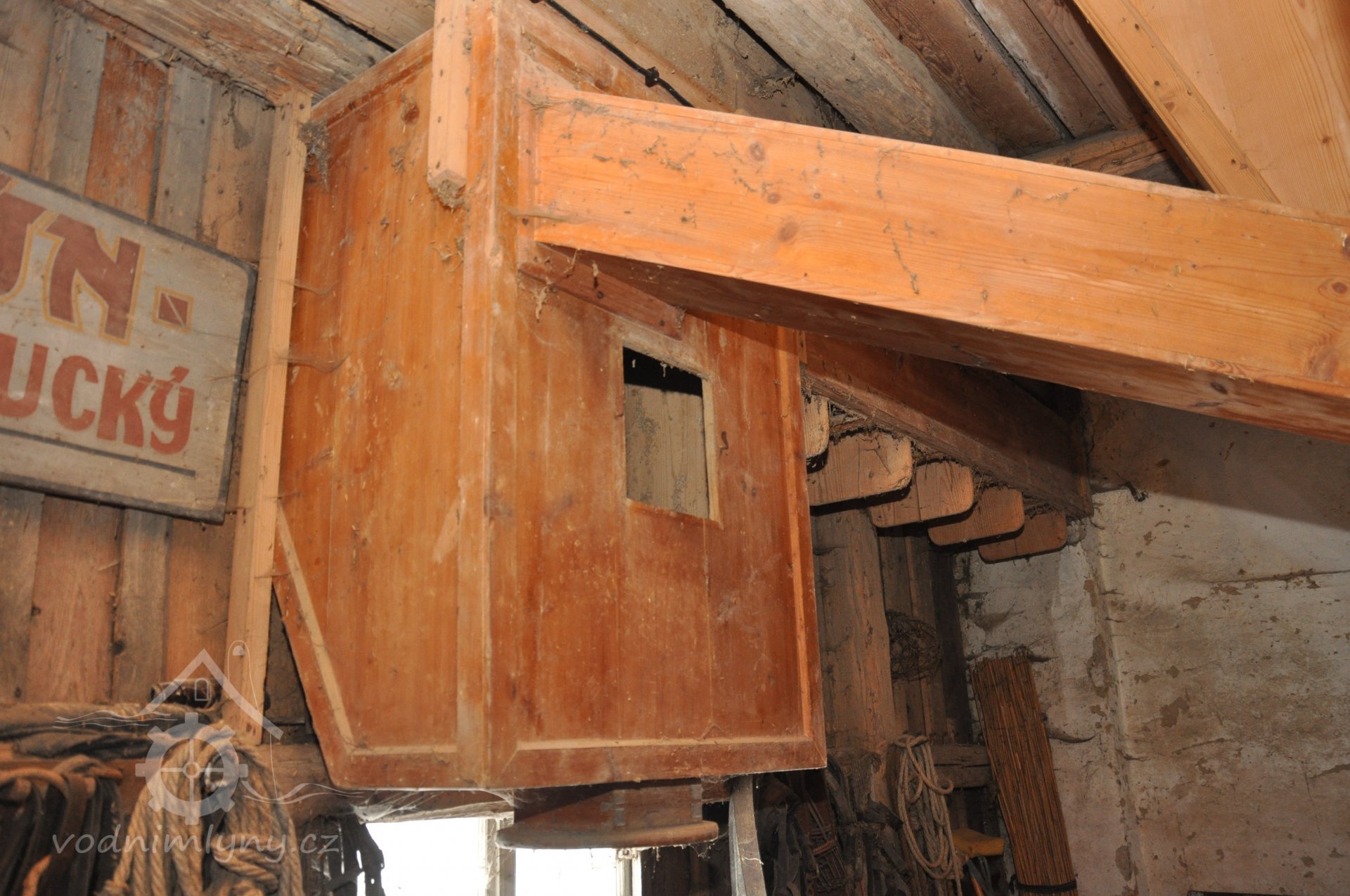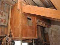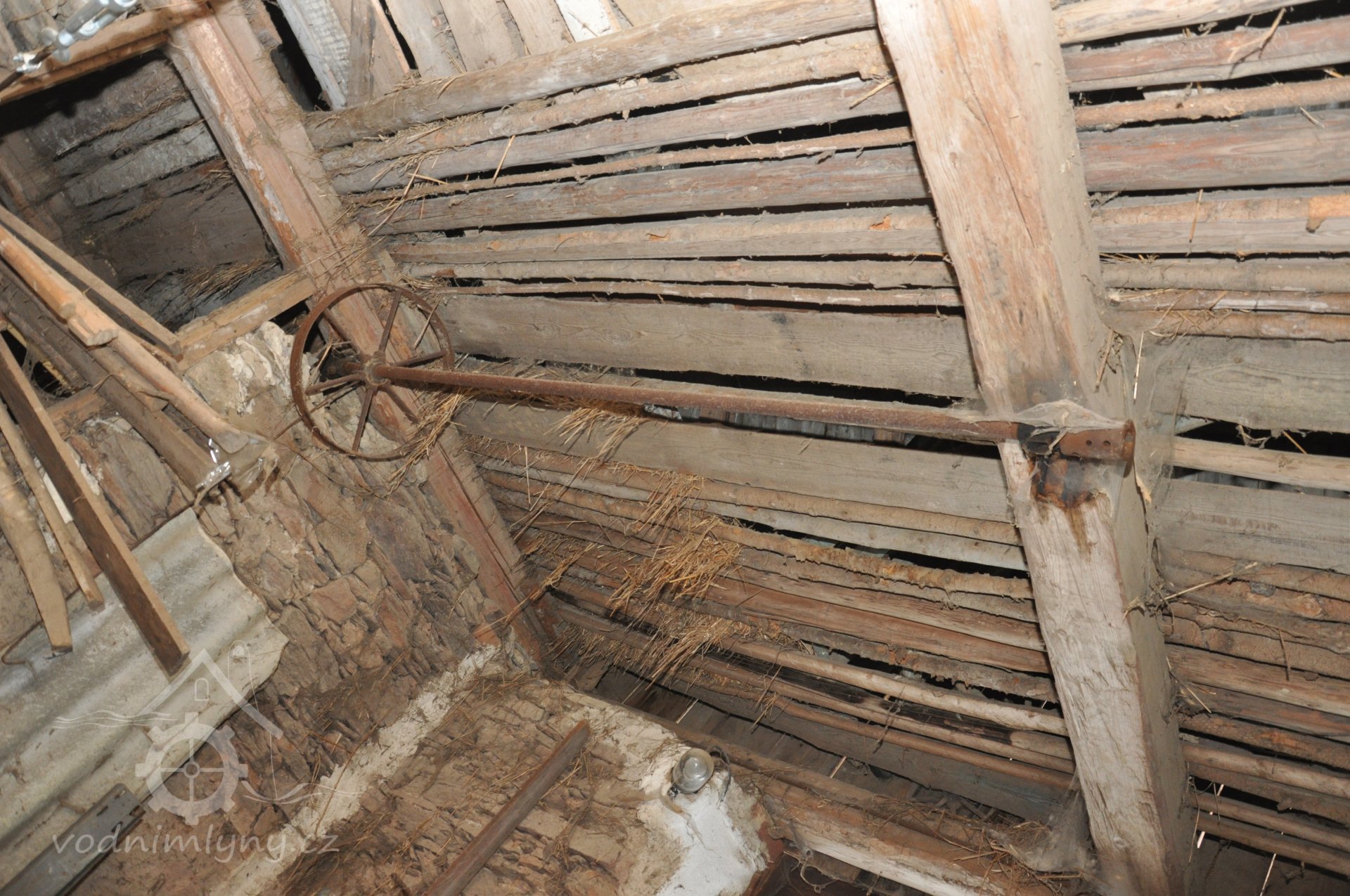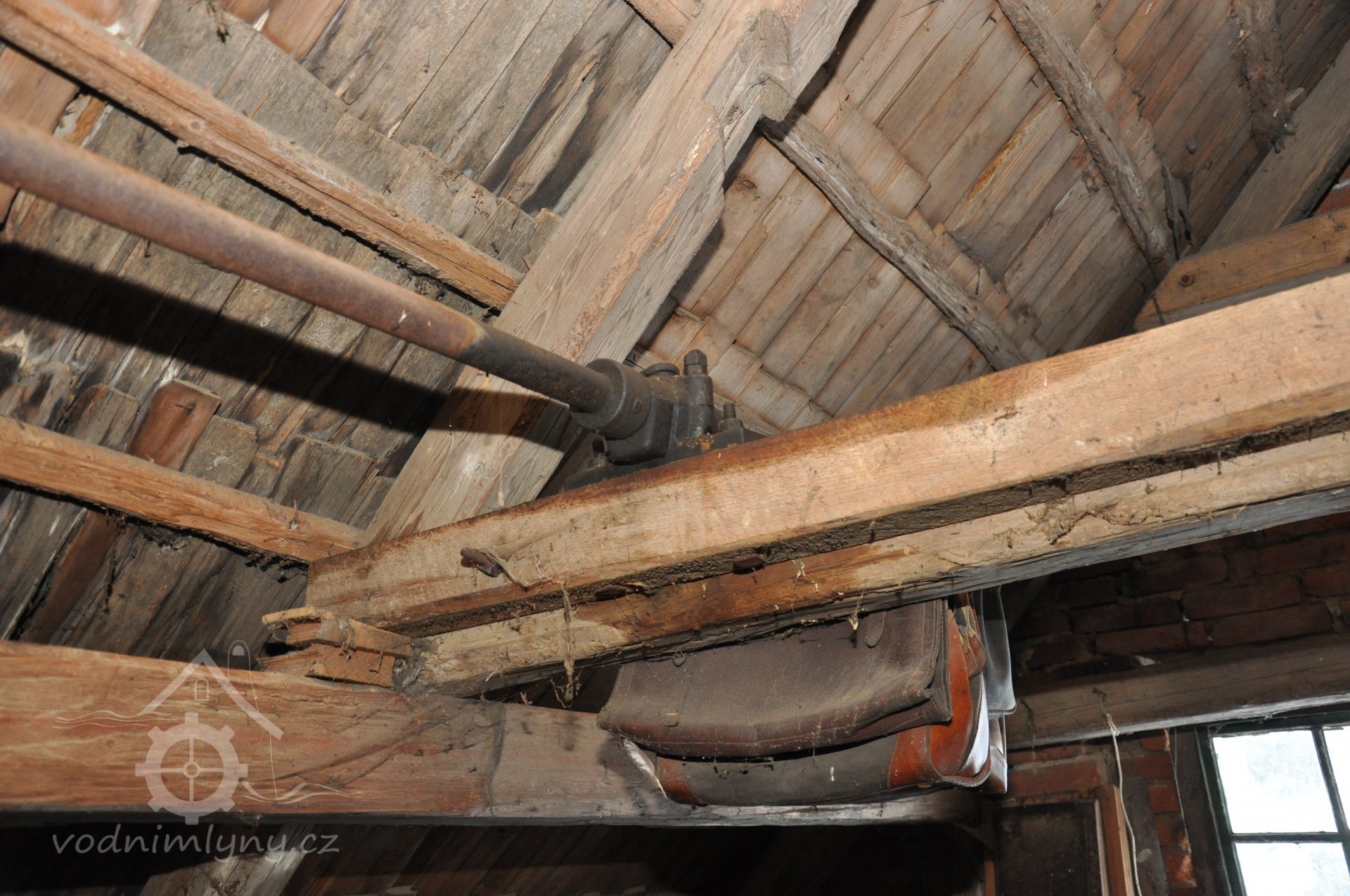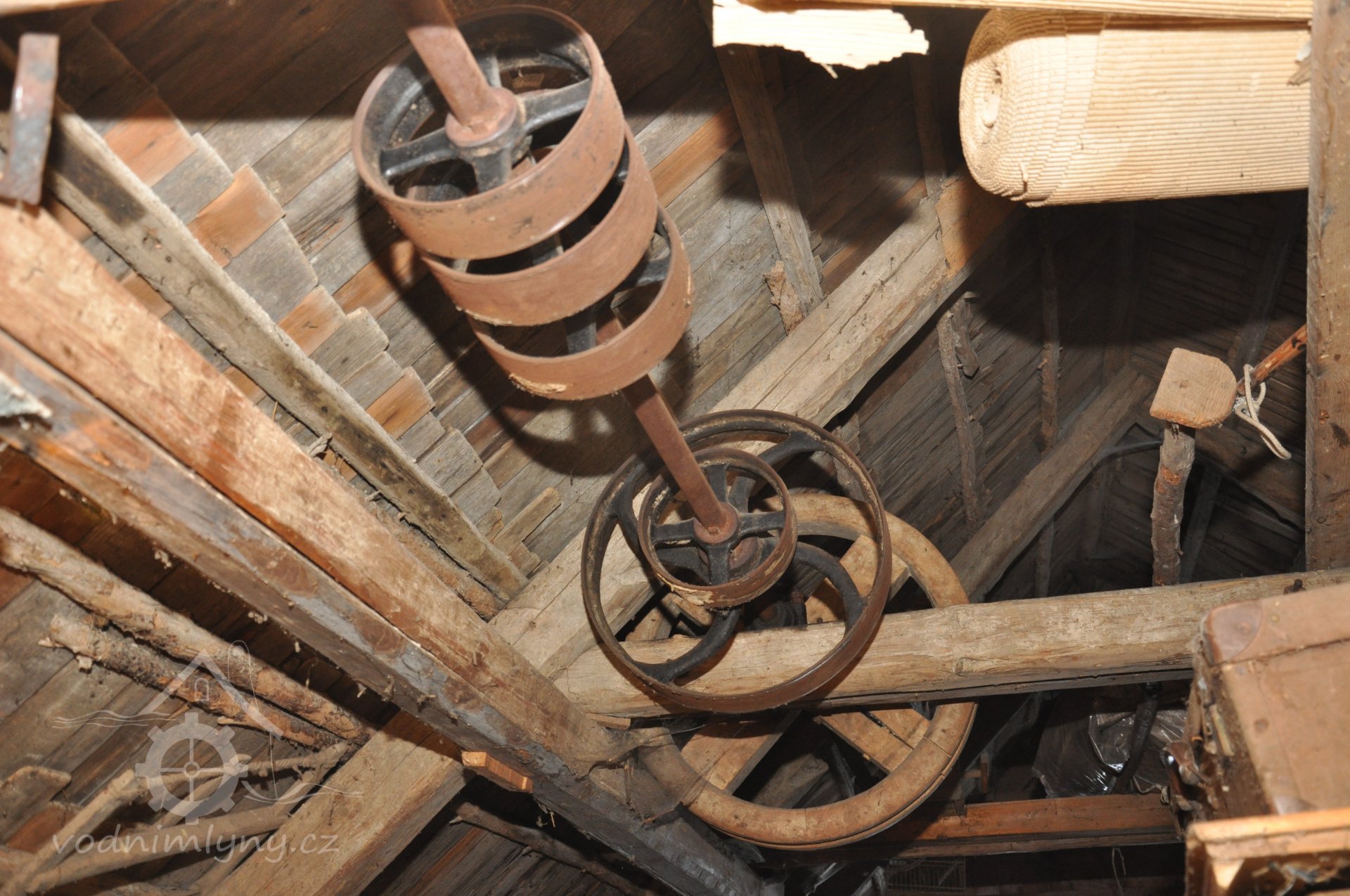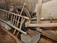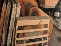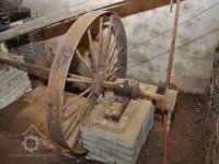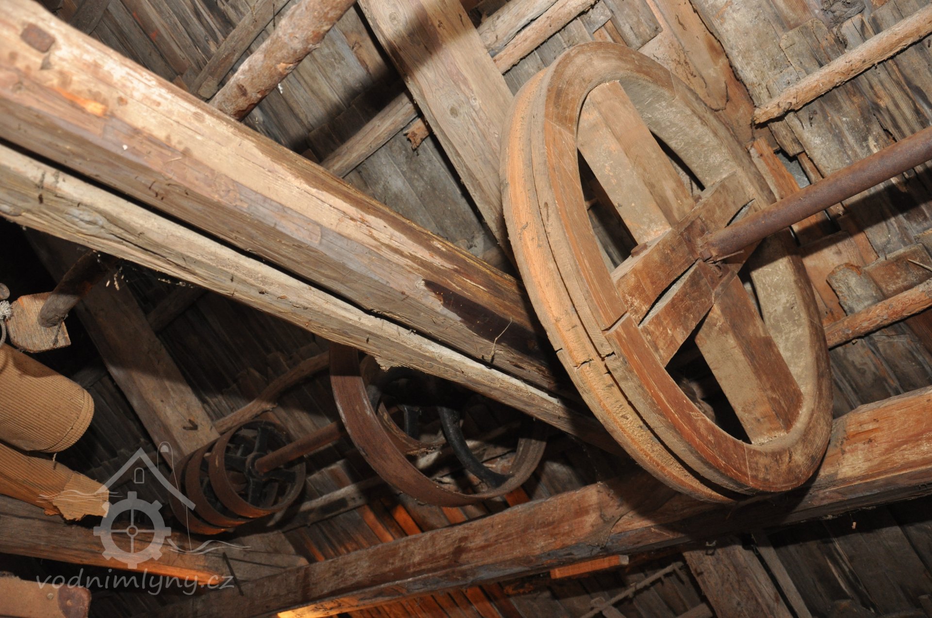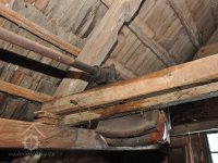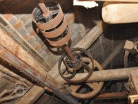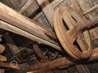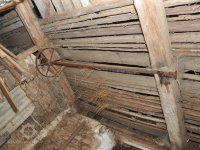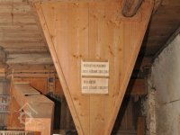 - Na transmisi v podstřeší je dřevěná kladka, která za pomoci lana jdoucího skrz střešní otvory (vzácně dochováno) roztáčela ještě malou transmisi ve stodole pohánějící mlátičku a další zemědělské stroje.